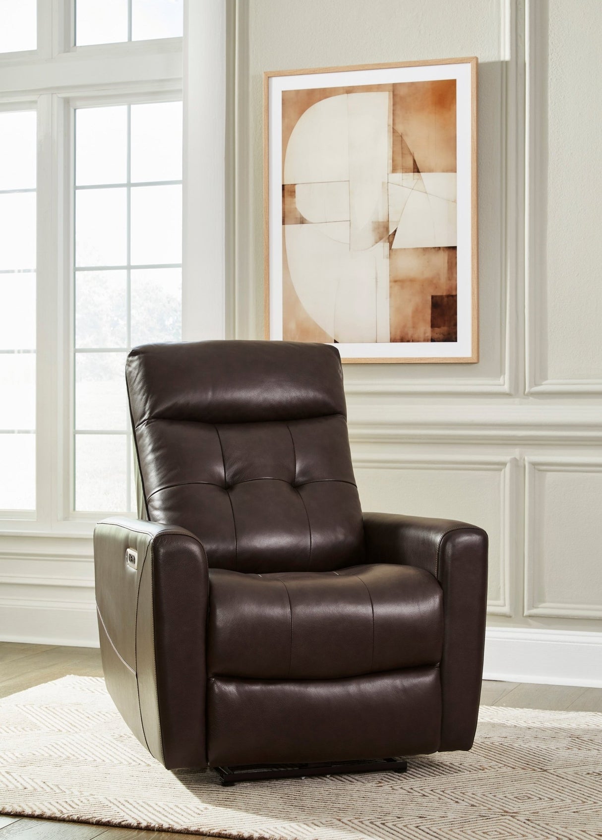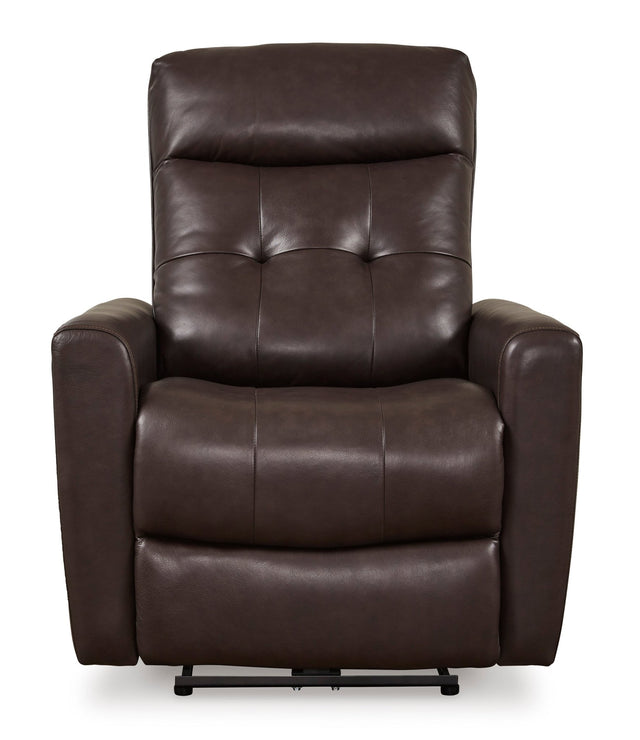 Sillón reclinable eléctrico Ashley Chocolate Pisgham con reposacabezas ajustable - Cuero