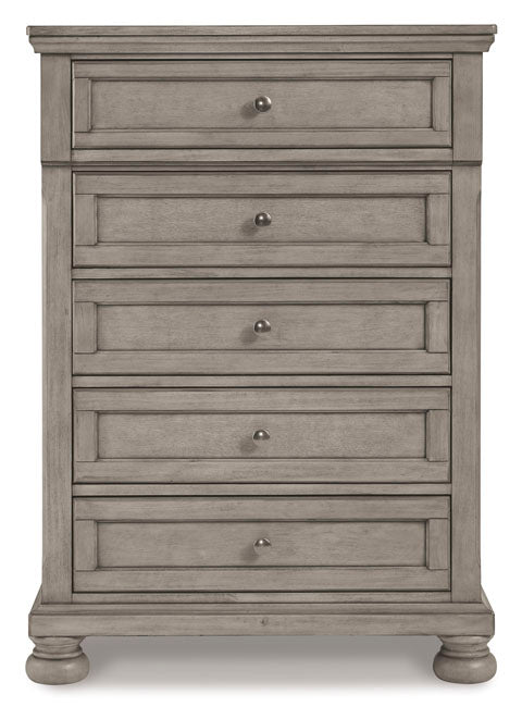 Cómoda de cinco cajones Ashley Lettner en gris claro