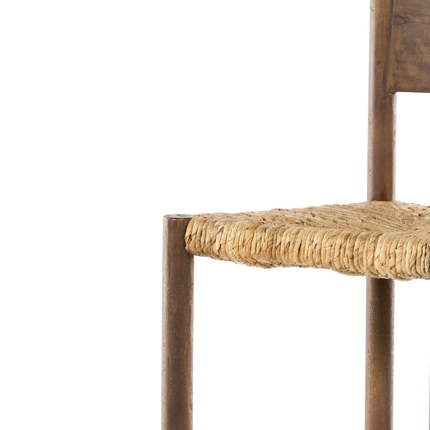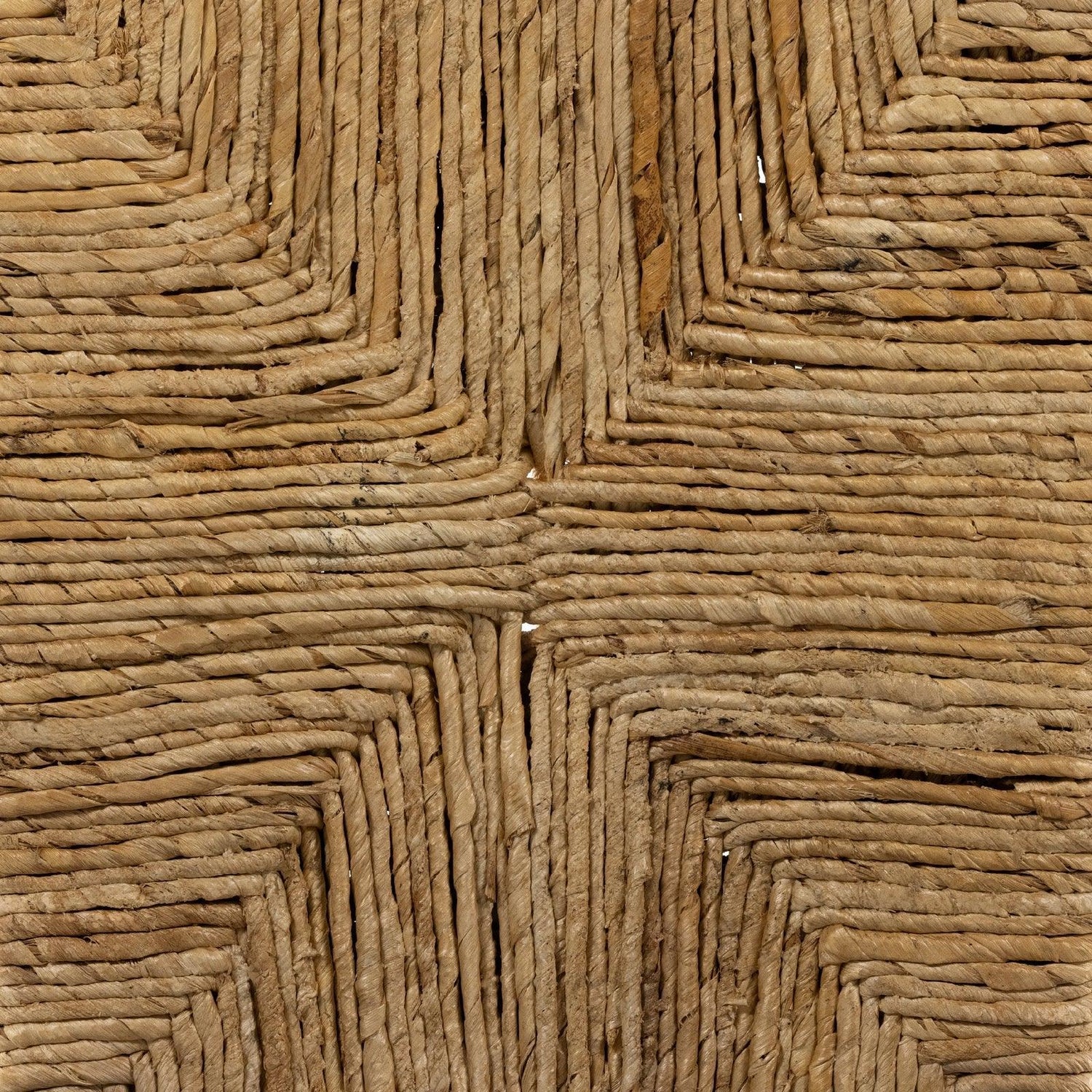 - Una nueva interpretación del estilo vintage: el mango macizo forma un marco limpio y angular para un asiento de hoja de plátano tejida.