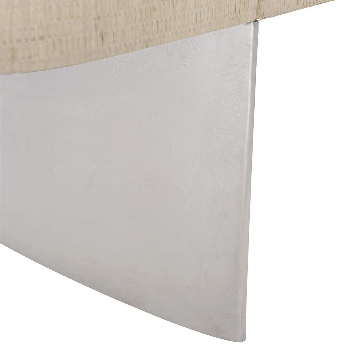 Con raíces en el mobiliario clásico moderno de mediados de siglo, la cómoda Almeda presenta un diseño limpio y sencillo, elaborado con materiales naturales. Su estructura redondeada de seis cajones está revestida de rafia blanqueada tejida. Hecha con hojas de palmera tropical, la tela aporta una textura terrosa, matices cálidos y un aire relajado. La tapa, las patas y los tiradores de los cajones de acero inoxidable pulido crean un elegante contraste.
