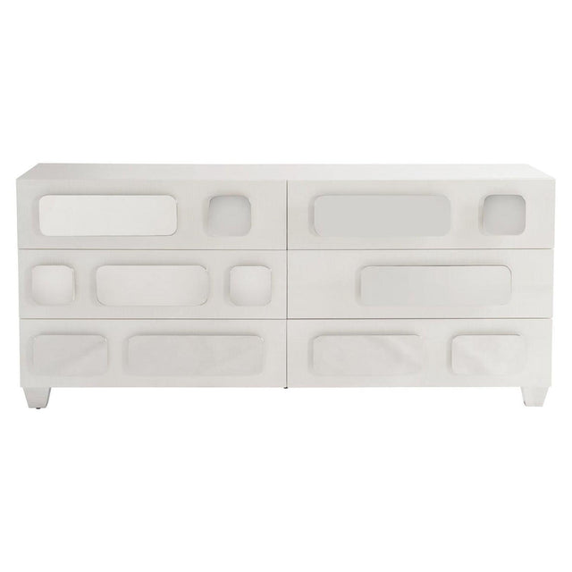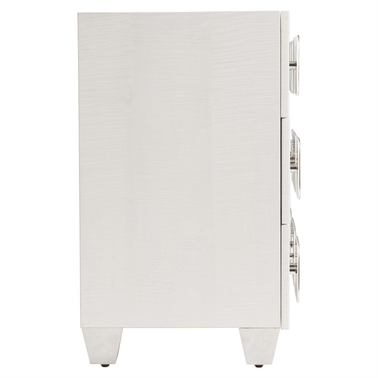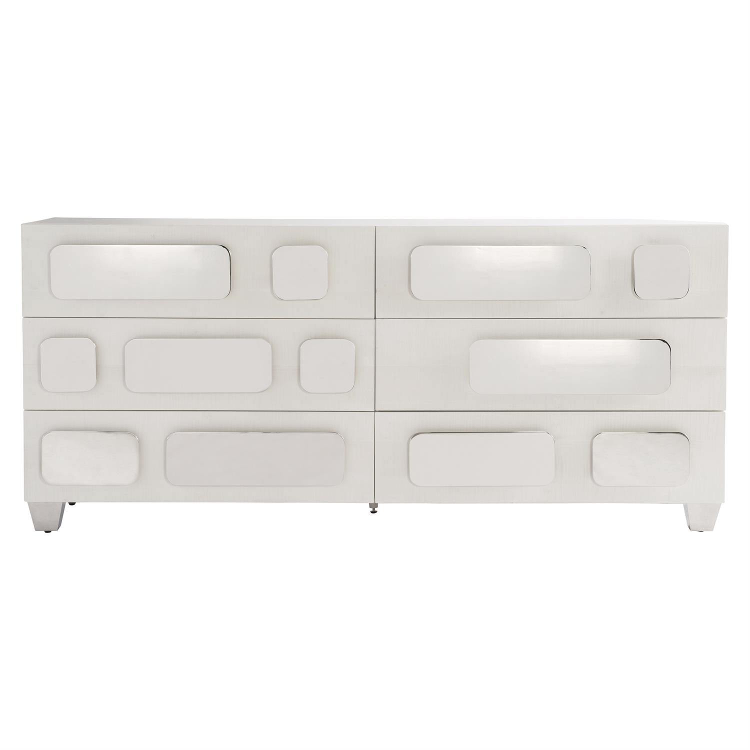 - Los herrajes cuentan una historia elegante en esta atrevida cómoda.