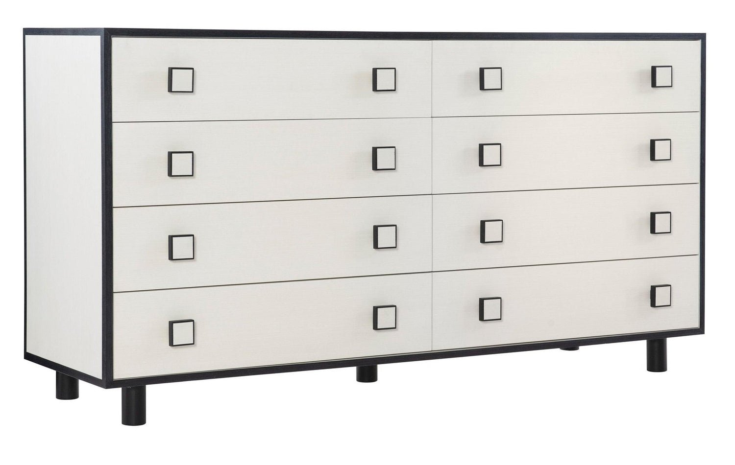 Una (1) cómoda Bernhardt Silhouette de 8 cajones en color cáscara de huevo y ónix.