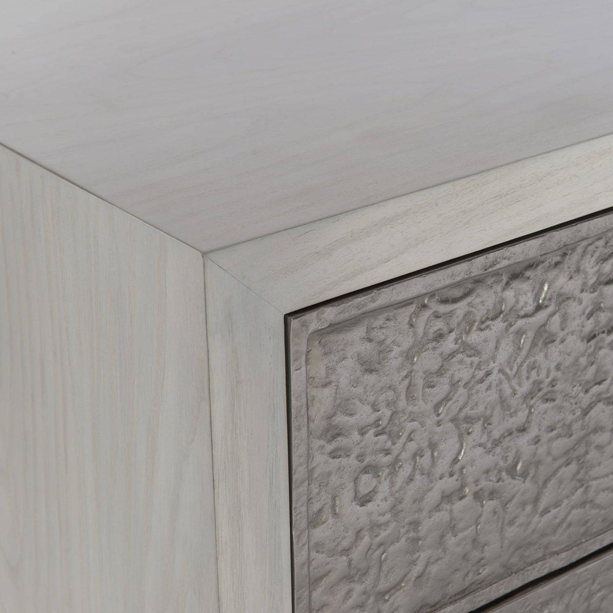 - Cuatro cajones de apertura por empuje con frentes de aluminio fundido texturizado