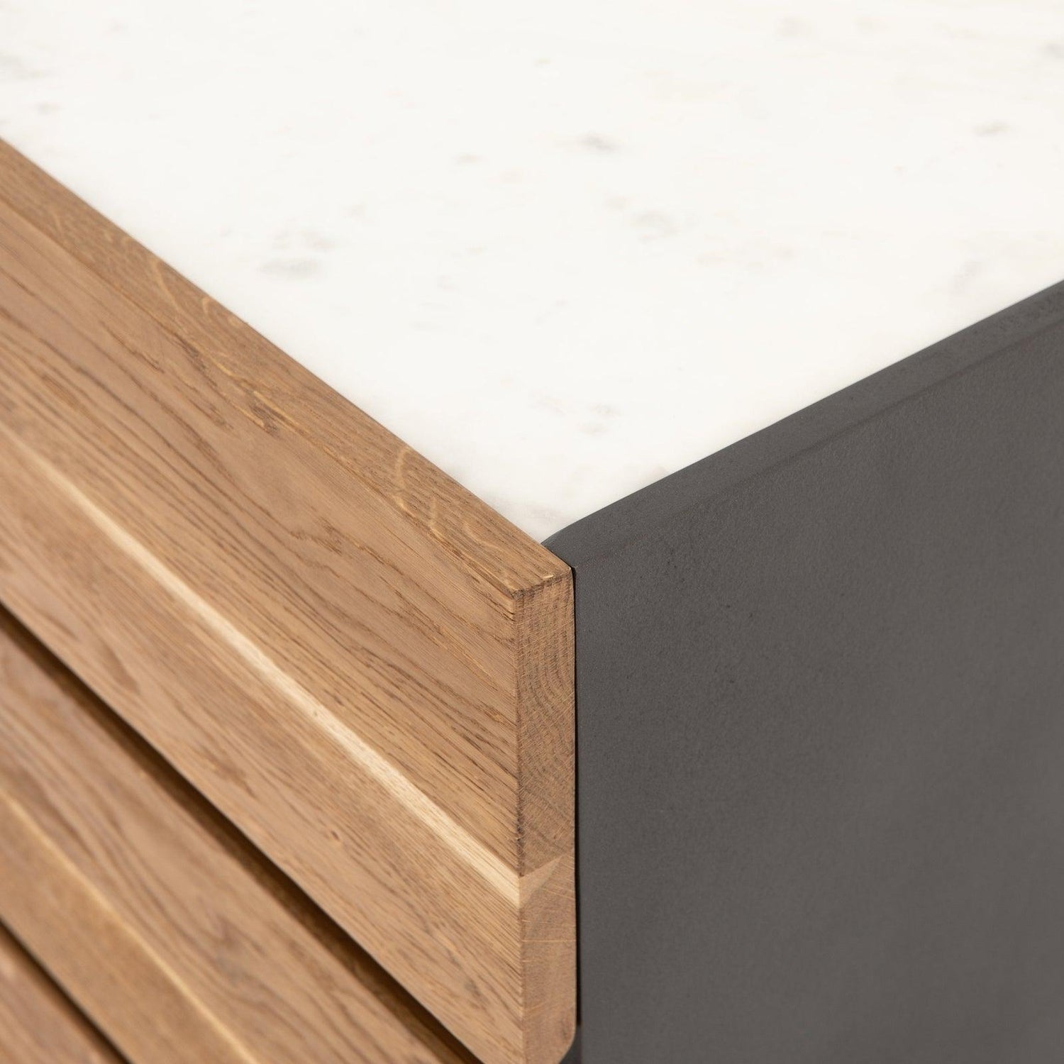 - Materiales: Madera de ingeniería, madera de roble, mármol