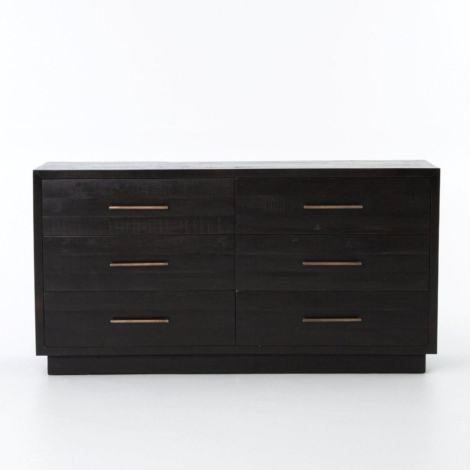 • Los herrajes con acabado de latón añaden un toque elegante a seis cajones espaciosos.