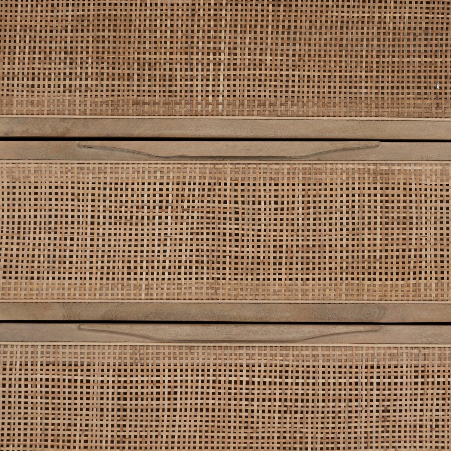 - El mango natural/ lavado en negro encierra seis espaciosos cajones de caña tejida, para lograr una apariencia texturizada con un contraste llamativo.