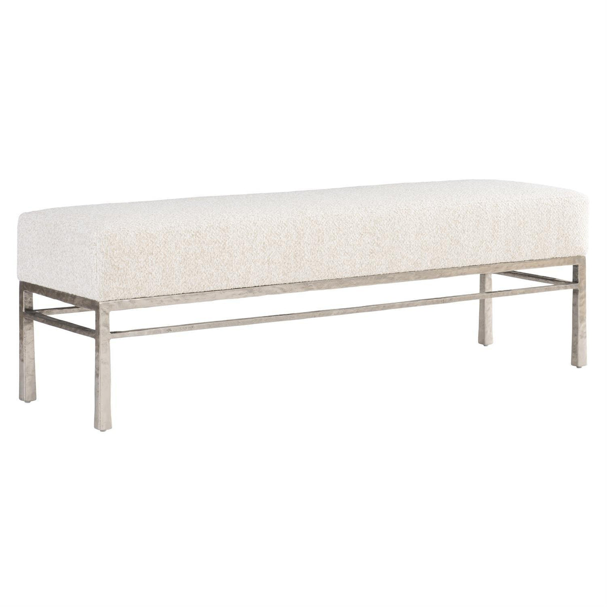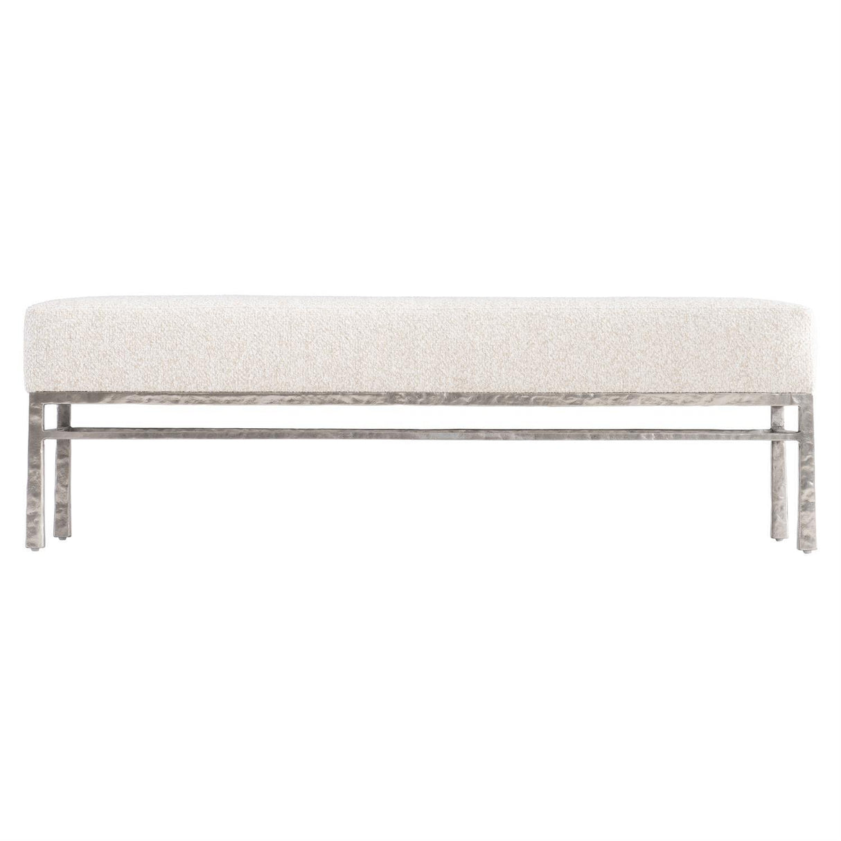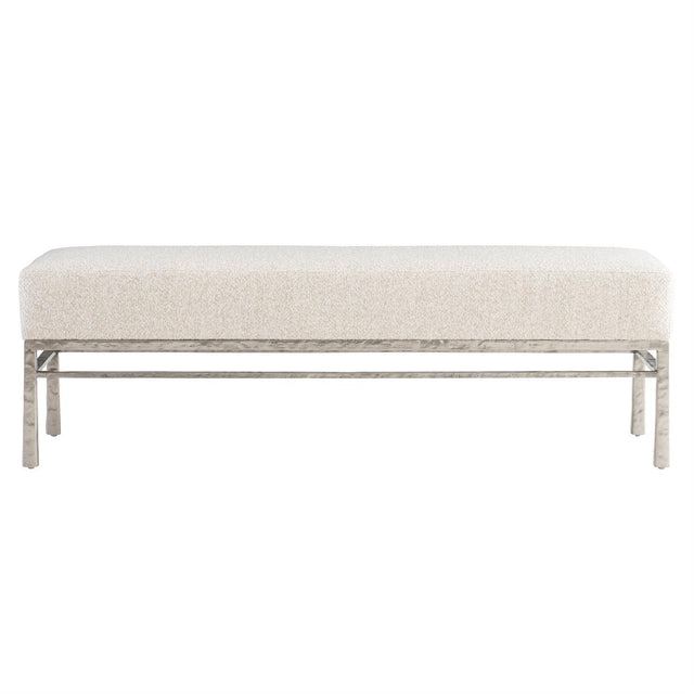 - El aluminio fundido texturizado crea un hermoso marco para este banco tapizado.