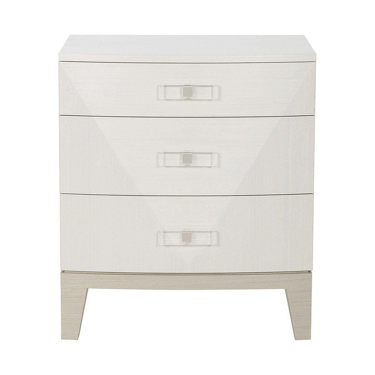 Mesita de noche compacta Axiom de 66 cm, blanca lineal, con herrajes acrílicos | Bernhardt