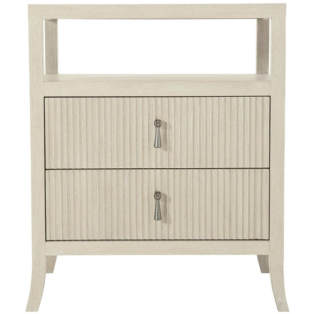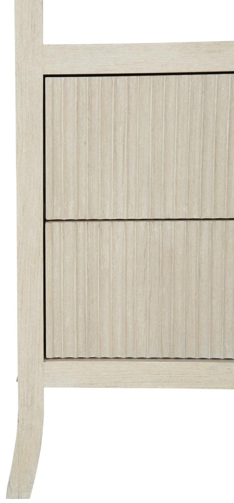 La mesita de noche compacta East Hampton de Bernhardt encarna la elegancia refinada en un formato más pequeño. Con un sutil acabado en lino Cerused que realza la belleza natural de las chapas de fresno, esta pieza equilibra una estética limpia y minimalista con suaves curvas y toques femeninos. Un compartimento abierto sobre dos cajones ofrece un almacenamiento versátil, mientras que los tiradores cónicos de plata envejecida en los frentes de los cajones con cuentas añaden un detalle elegante y brillante.