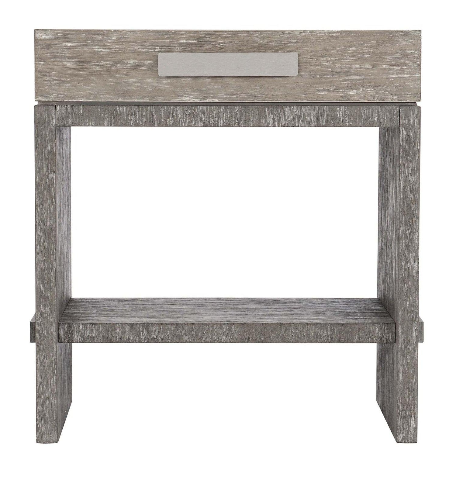 La mesita de noche Foundations combina texturas rústicas con detalles contemporáneos y se ofrece en dos elegantes acabados de dos tonos para complementar una variedad de estilos de dormitorio.