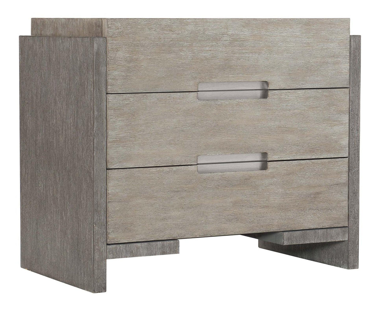 Mesita de noche Foundations de tres cajones en acacia pizarra clara y pizarra oscura con puertos USB | Bernhardt
