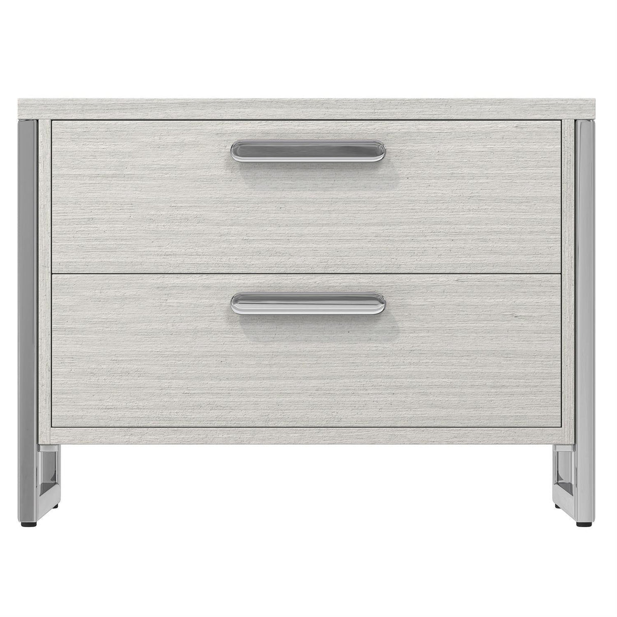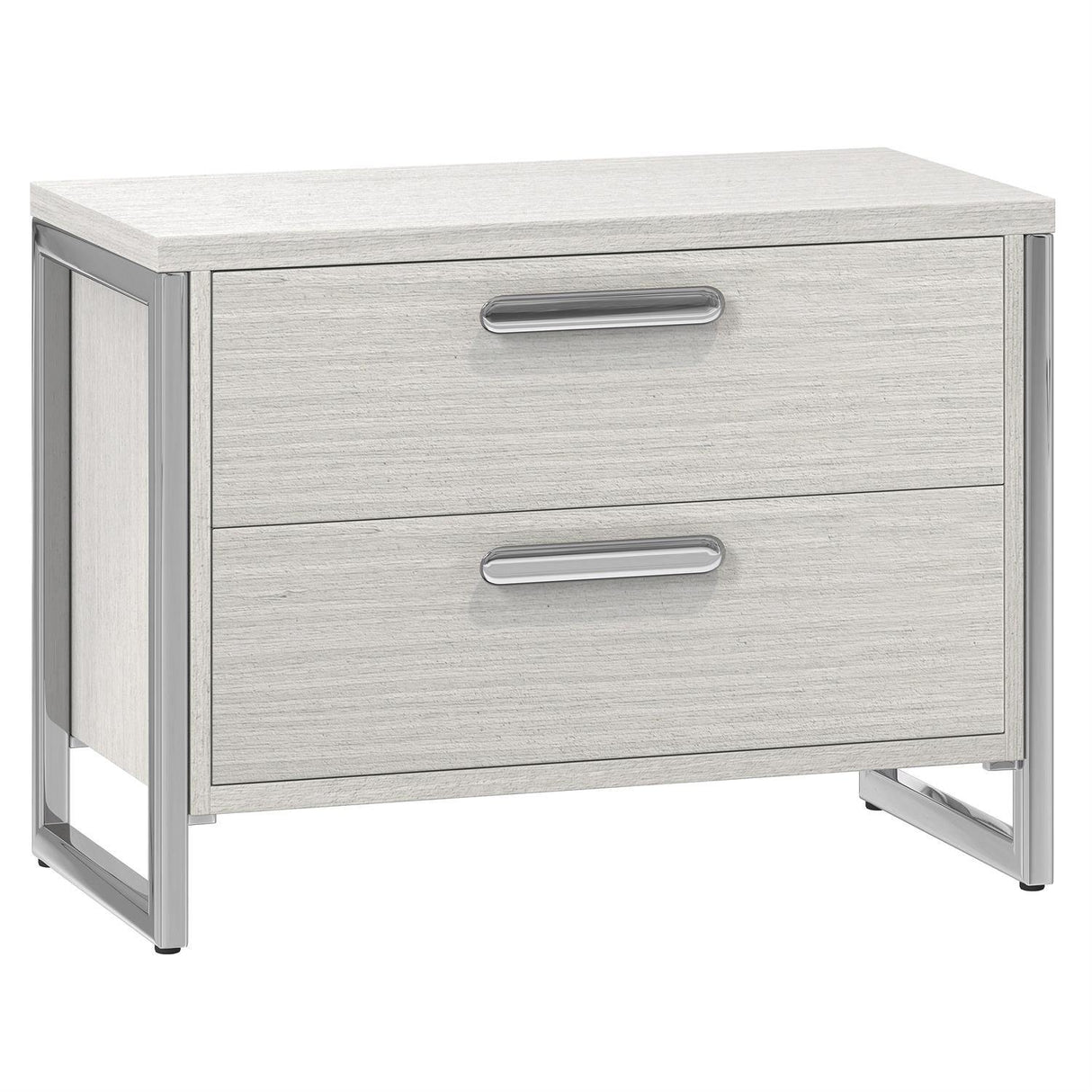 Mesita de noche Stratum Wide de 96 cm, acabado en niebla, con marco de níquel | Bernhardt