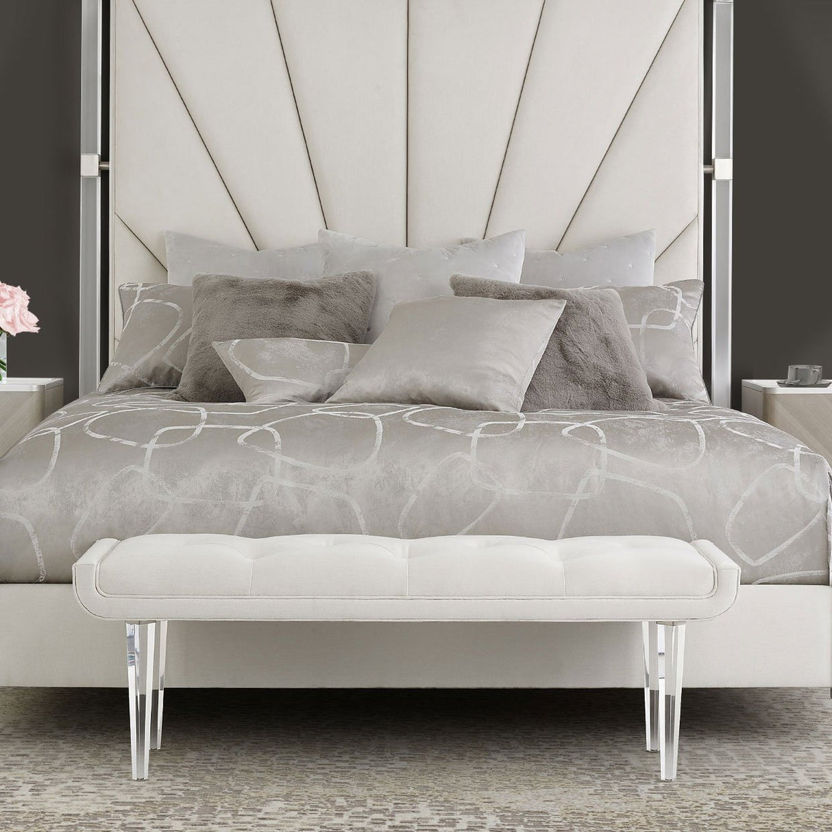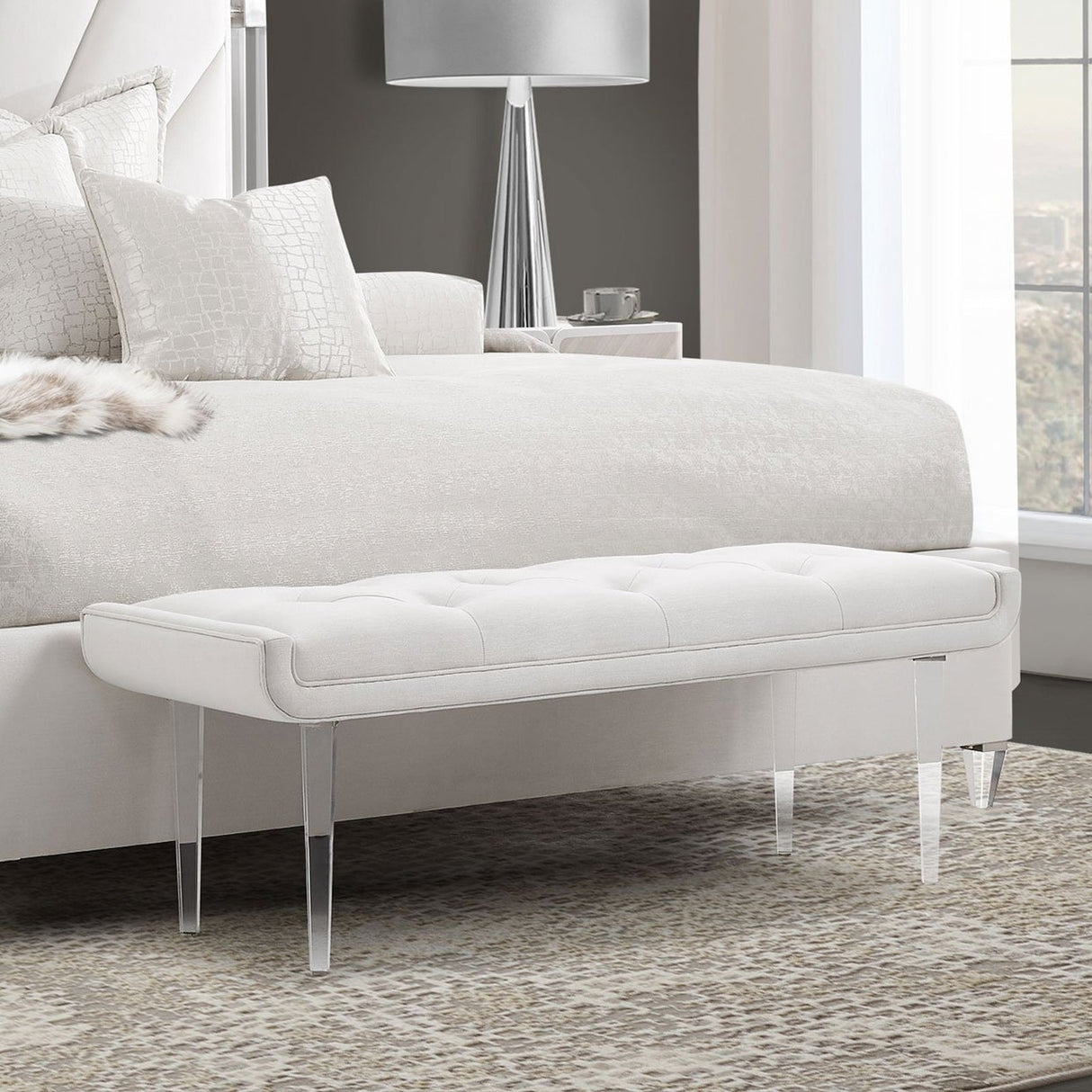 Banco de cama Lanterna con asiento capitoné y patas de acrílico – Muebles Aico