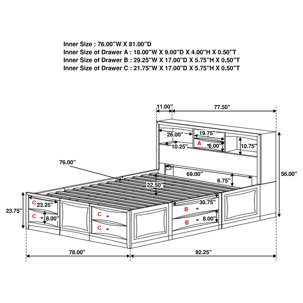 Cama Phoenix Eastern King con espacio de almacenamiento, color capuchino | Coaster está agotado y se enviará tan pronto como vuelva a estar disponible.