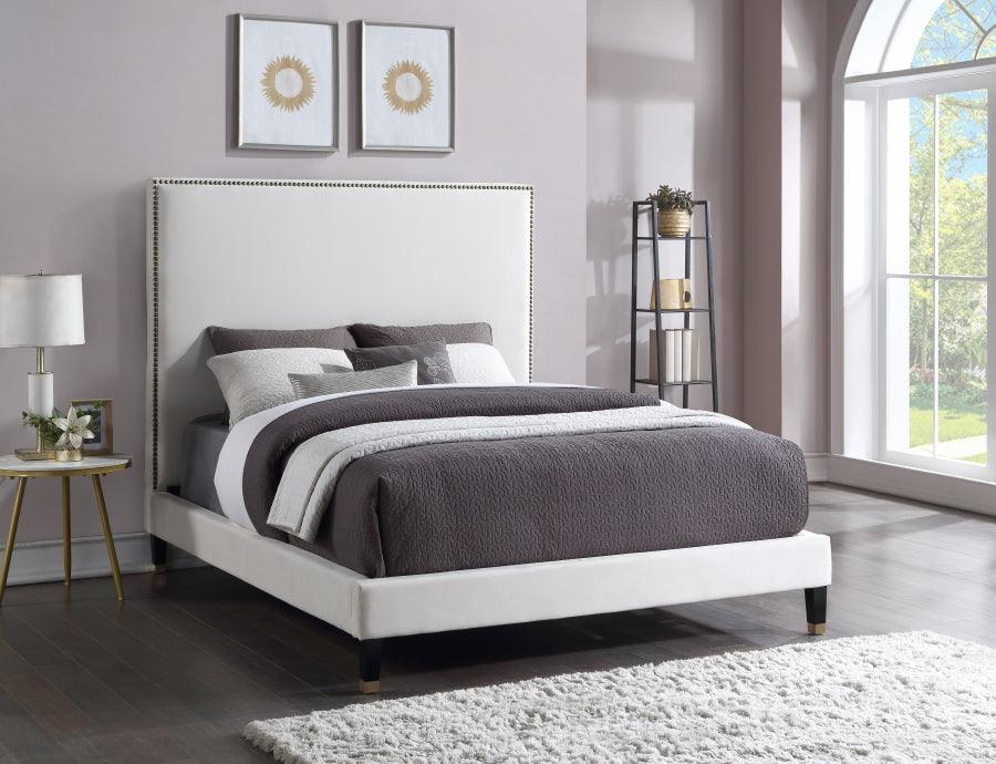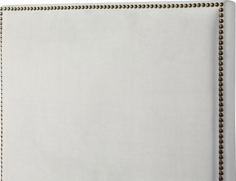 Meridian Furniture - Cama Harlie King de terciopelo en color crema - HarlieCream-K