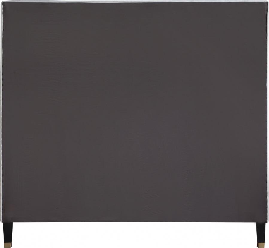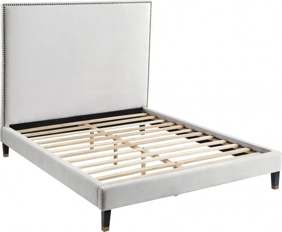 Meridian Furniture - Cama Queen Harlie de terciopelo color crema - HarlieCream-Q