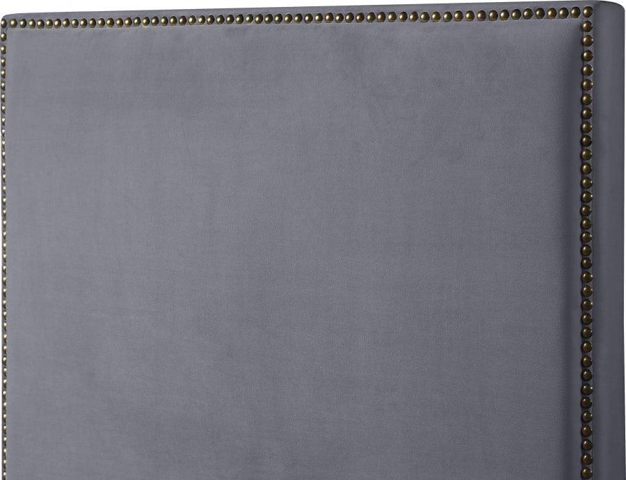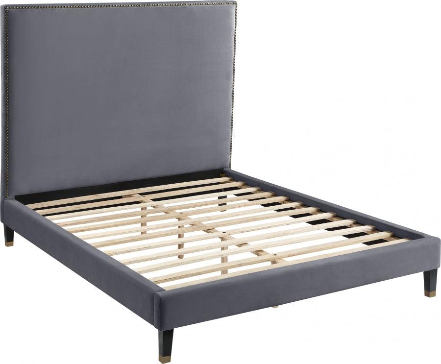 Meridian Furniture - Cama Queen Harlie de terciopelo gris - HarlieGrey-Q