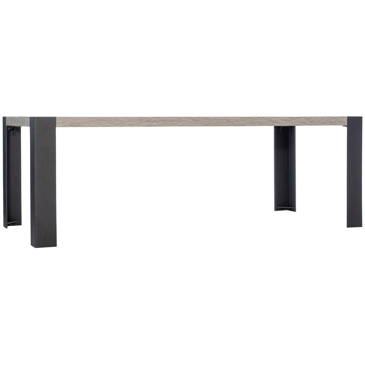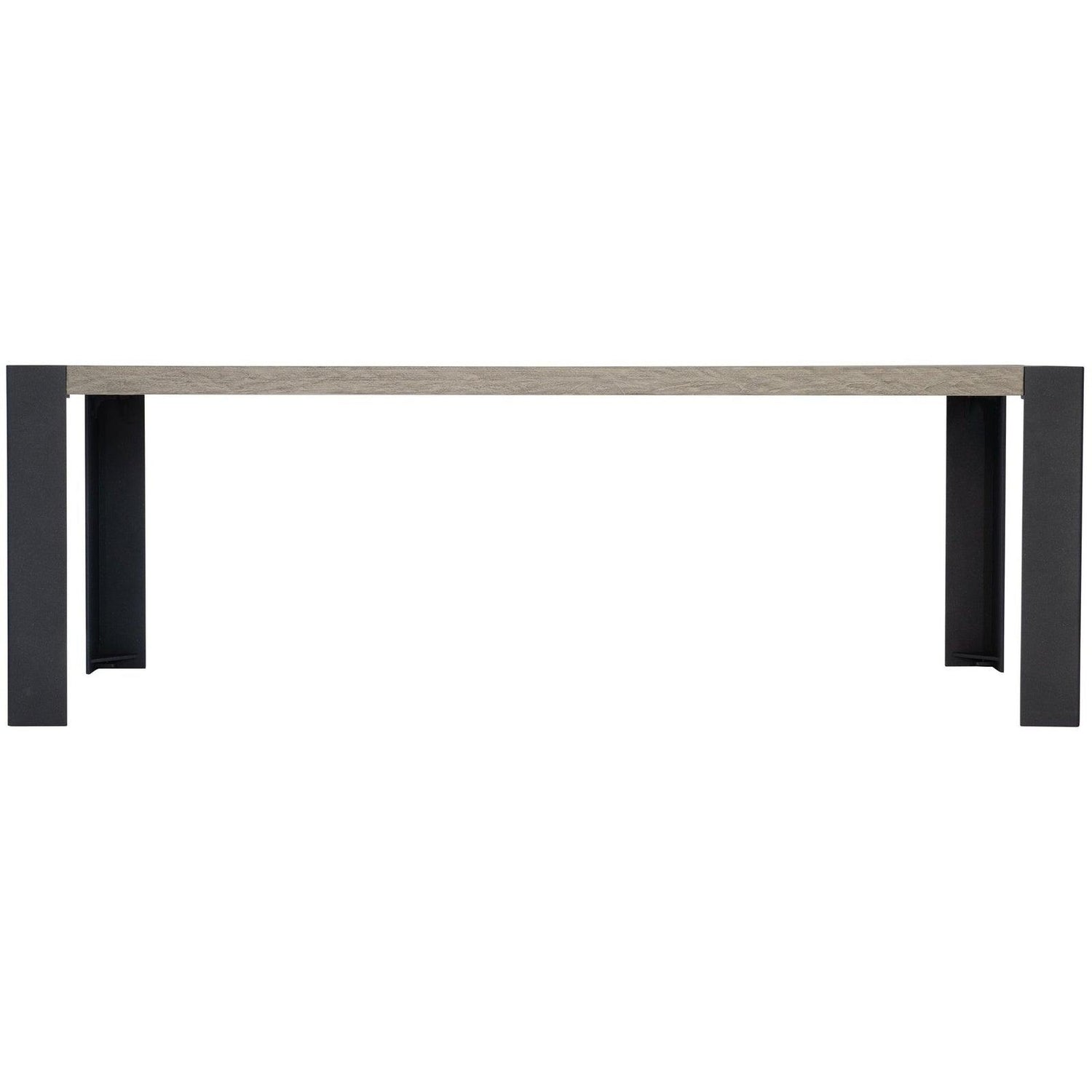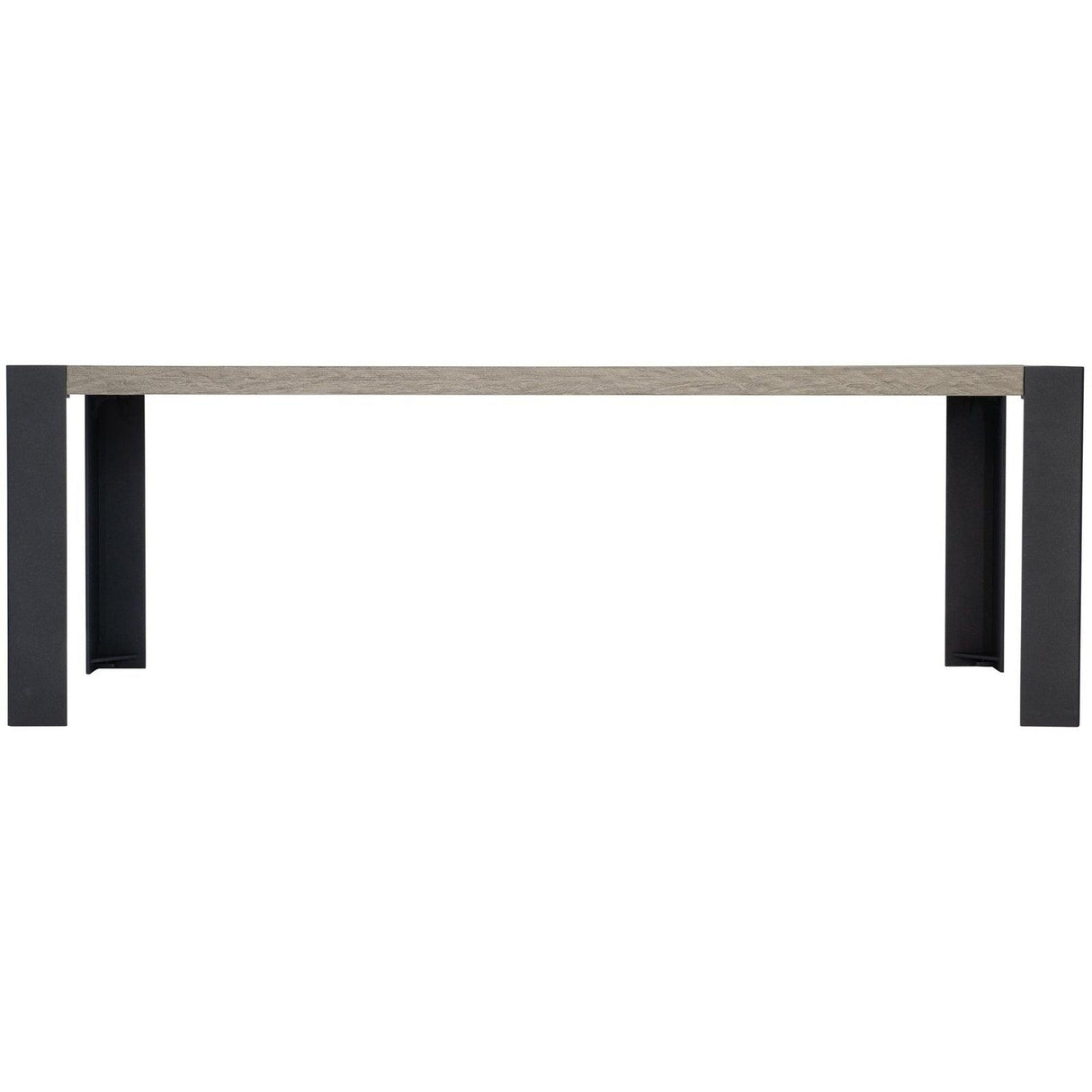 Bernhardt Exteriors se caracteriza por su excepcional lujo y diseño elegante. Elegante y sofisticada, la mesa de comedor Cedar Key combina una estética limpia y moderna con materiales rústicos. El clásico tablero de tablones está elaborado en madera de teca con un acabado desgastado, que contrasta con las patas de aluminio en forma de L con acabado carbón. Su aspecto minimalista, a la vez que cálido y acogedor, le confiere una apariencia elegante.