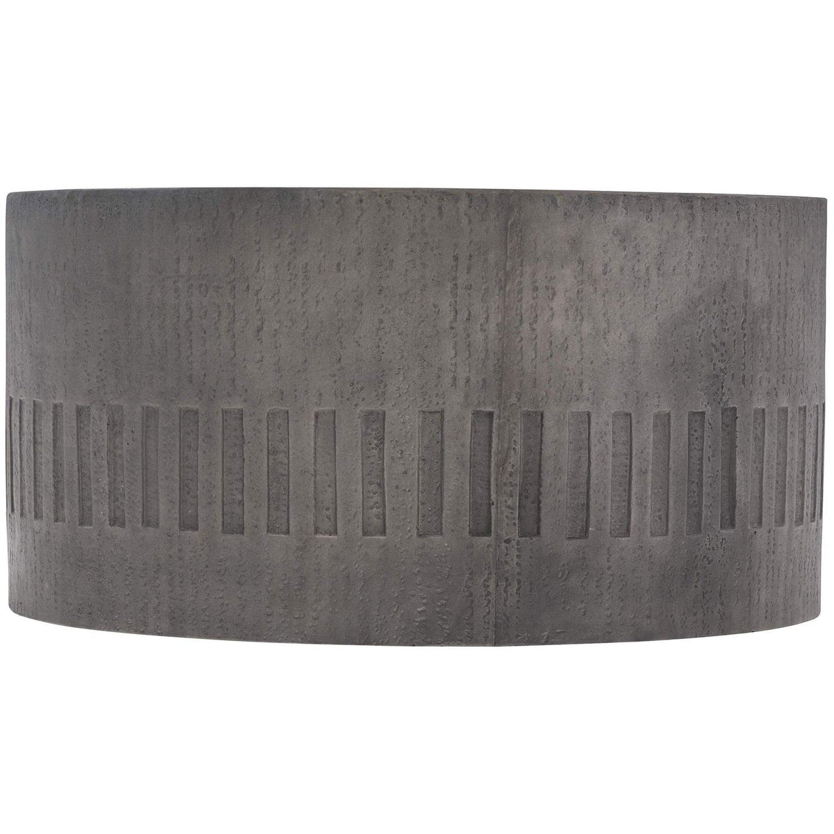 Combinando un carácter rústico con un toque artístico contemporáneo, la mesa de cóctel para exteriores Miramar de Bernhardt Exteriors aporta una personalidad audaz a los espacios exteriores. Fabricada en hormigón reforzado con fibra de vidrio texturizado con un acabado en color carbón oscuro intenso, esta mesa redonda presenta un patrón geométrico grabado y superficies irregulares que hacen que cada pieza sea única. Una capa superior de poliuretano garantiza su resistencia a la intemperie, manteniendo su atractivo diseño vanguardista.