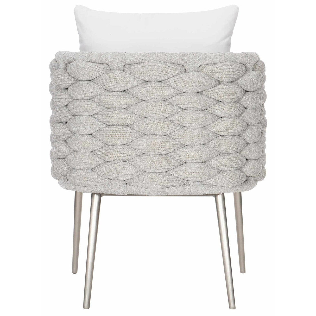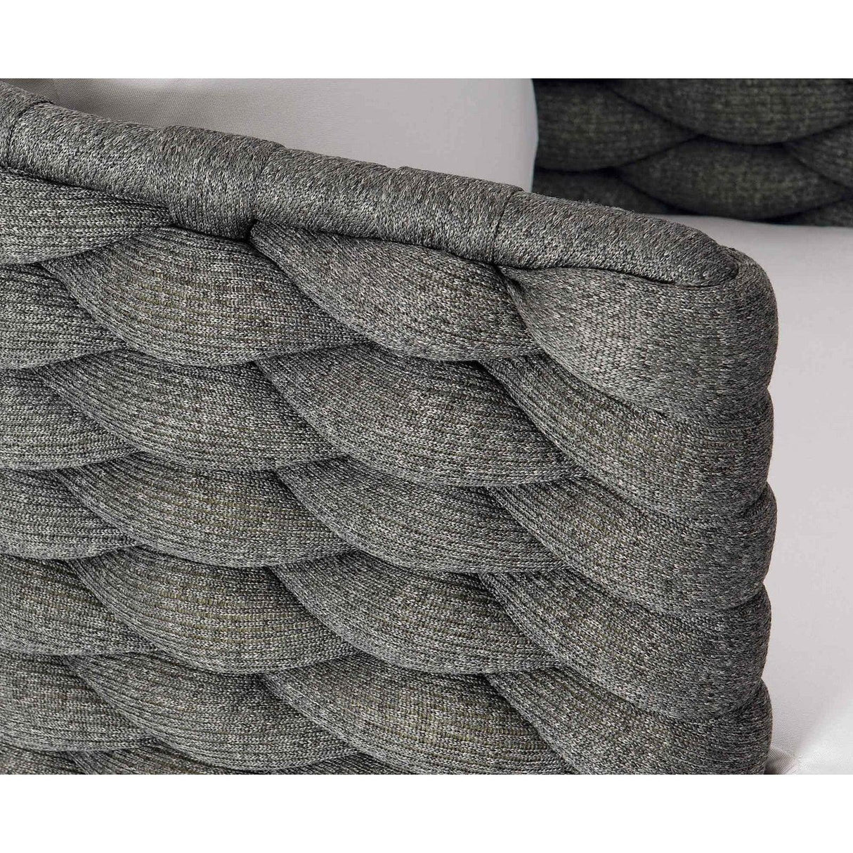 - Con un tejido de calcetín suave para todo clima en gris nórdico/cadete envuelto alrededor de un marco de aluminio, el sillón Santa Cruz ofrece comodidad lujosa y atractivo moderno con un toque orgánico.