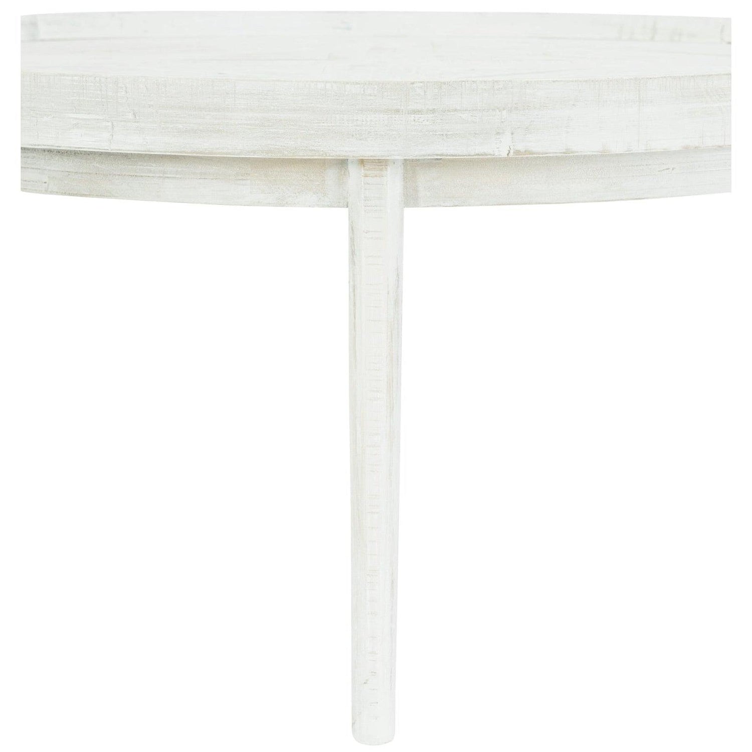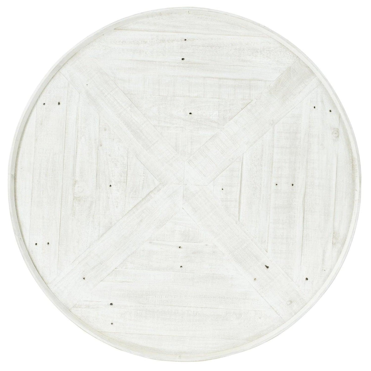 - Rústico pero refinado, el acabado blanco cepillado sobre pino envejecido resalta las vetas y las imperfecciones de la madera.