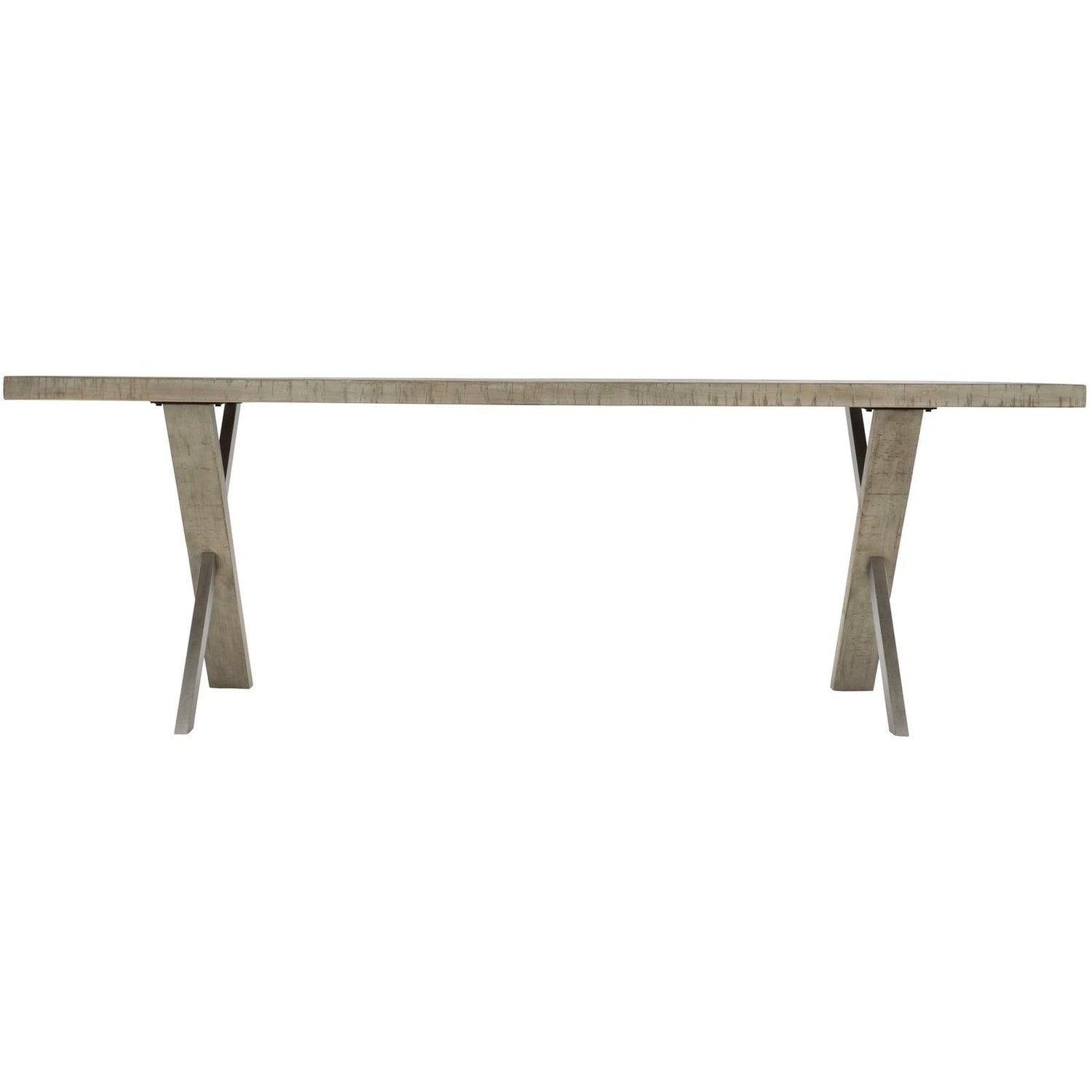 Mesa de comedor rectangular Milo de pino recuperado con acabado morilla y base de metal, de Bernhardt