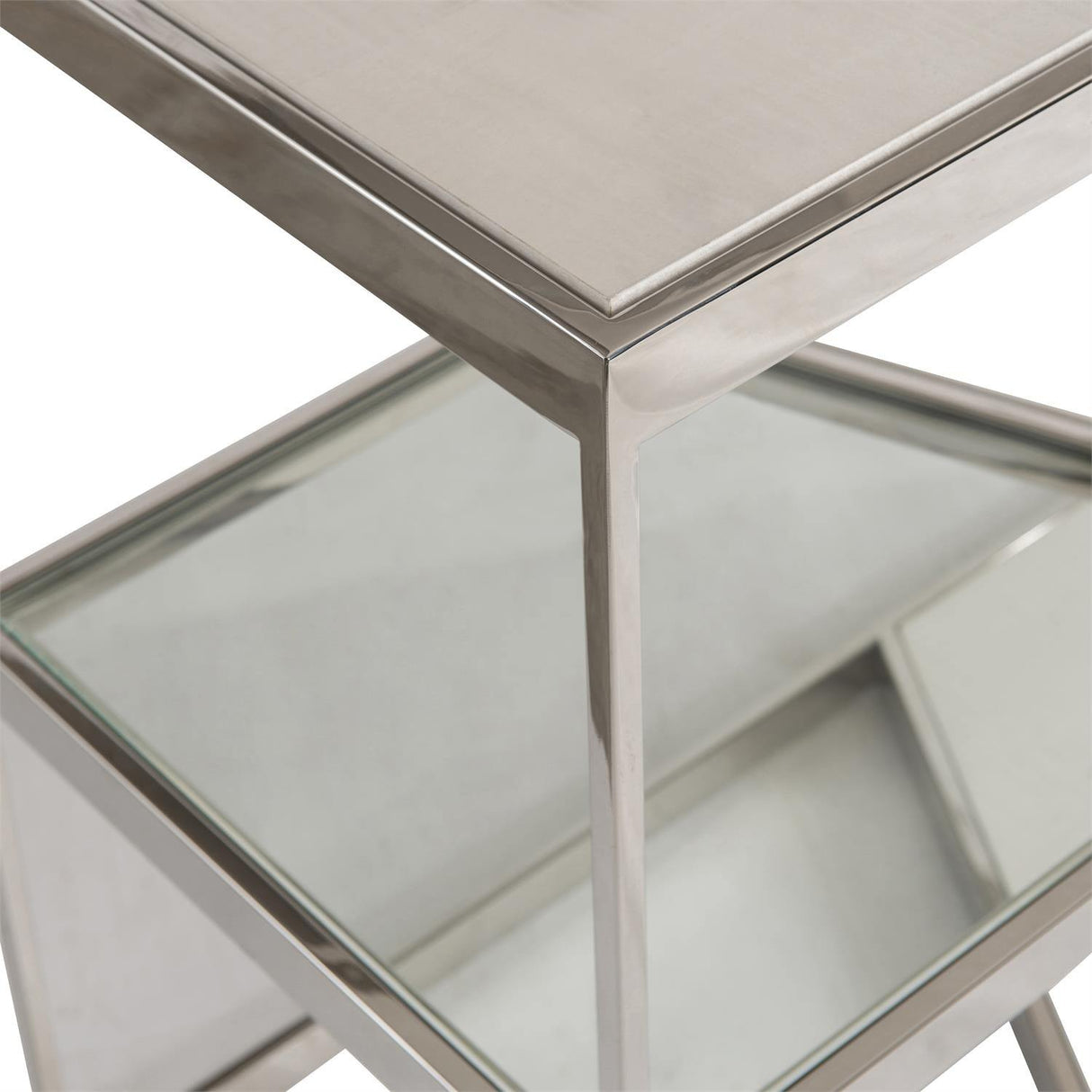 - El estilo elegante es un punto fuerte de esta mesa consola de técnica mixta.