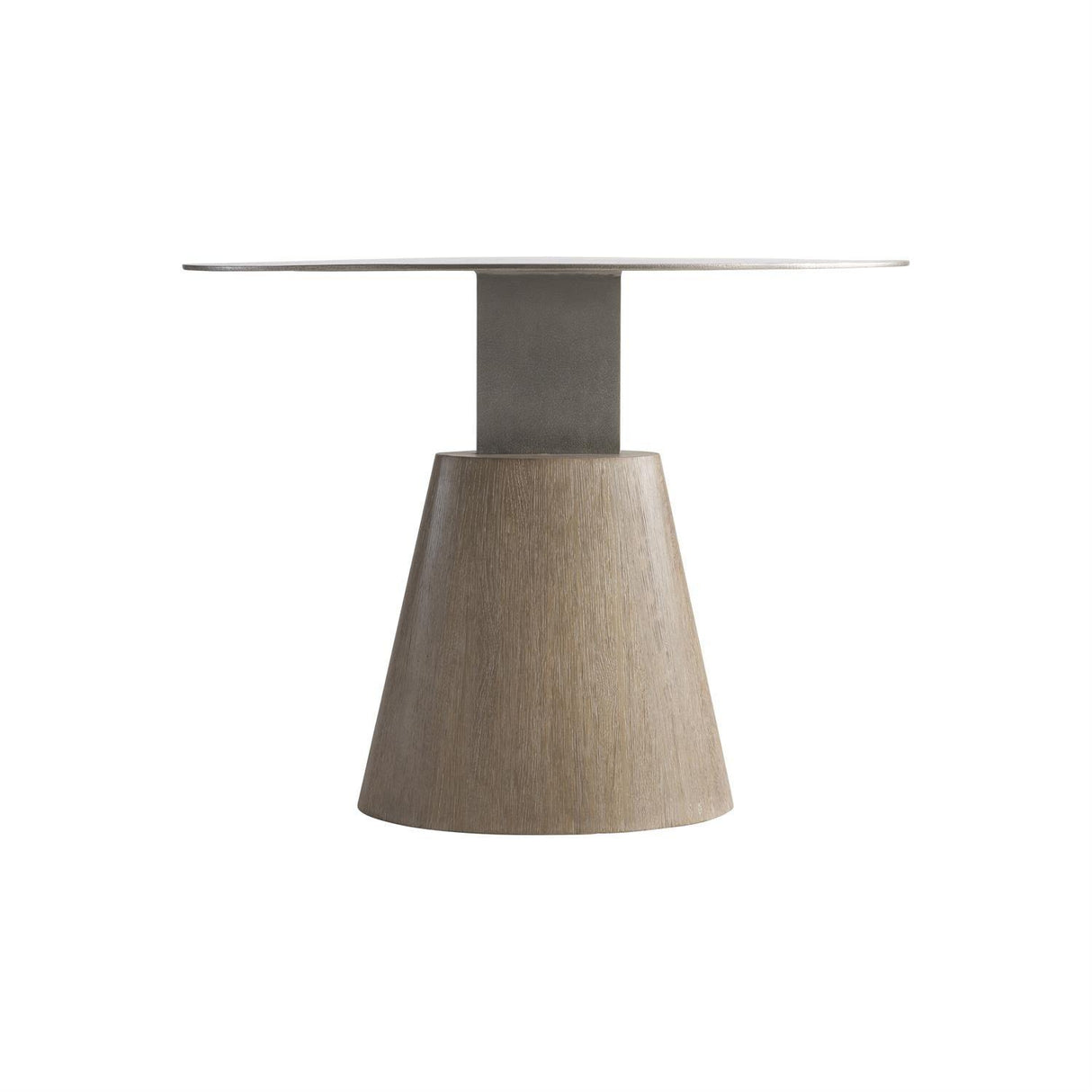 - La base enchapada en roble blanco y en forma de cono se conecta al panel de soporte de metal en la parte superior