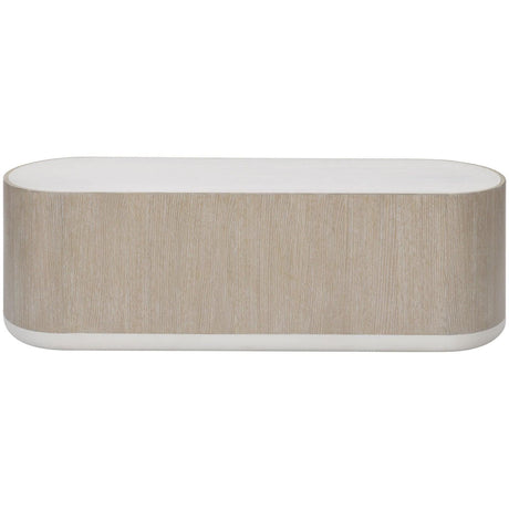 Mesa de cóctel ovalada Solaria de 142 cm, resina fósil y roble duna – Bernhardt