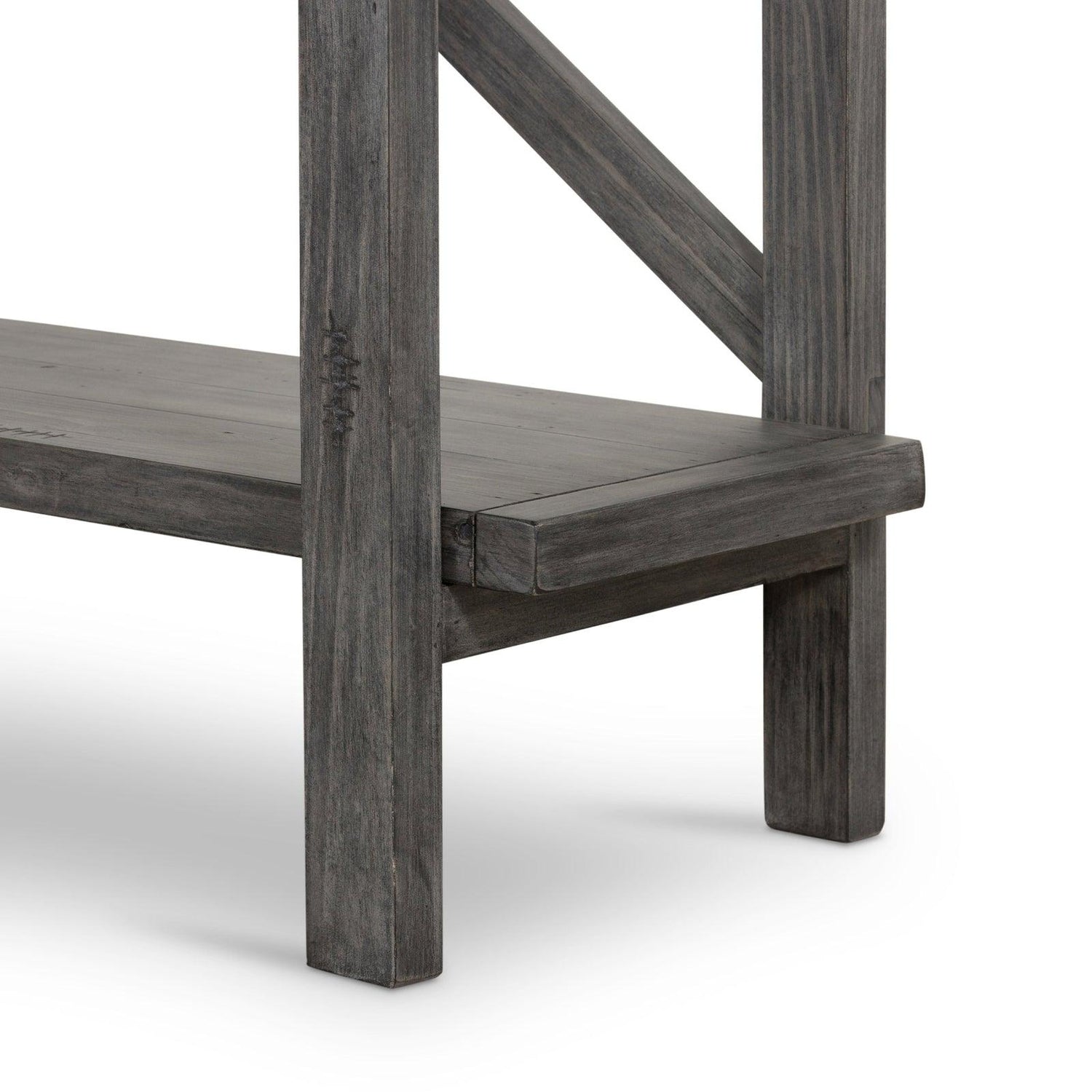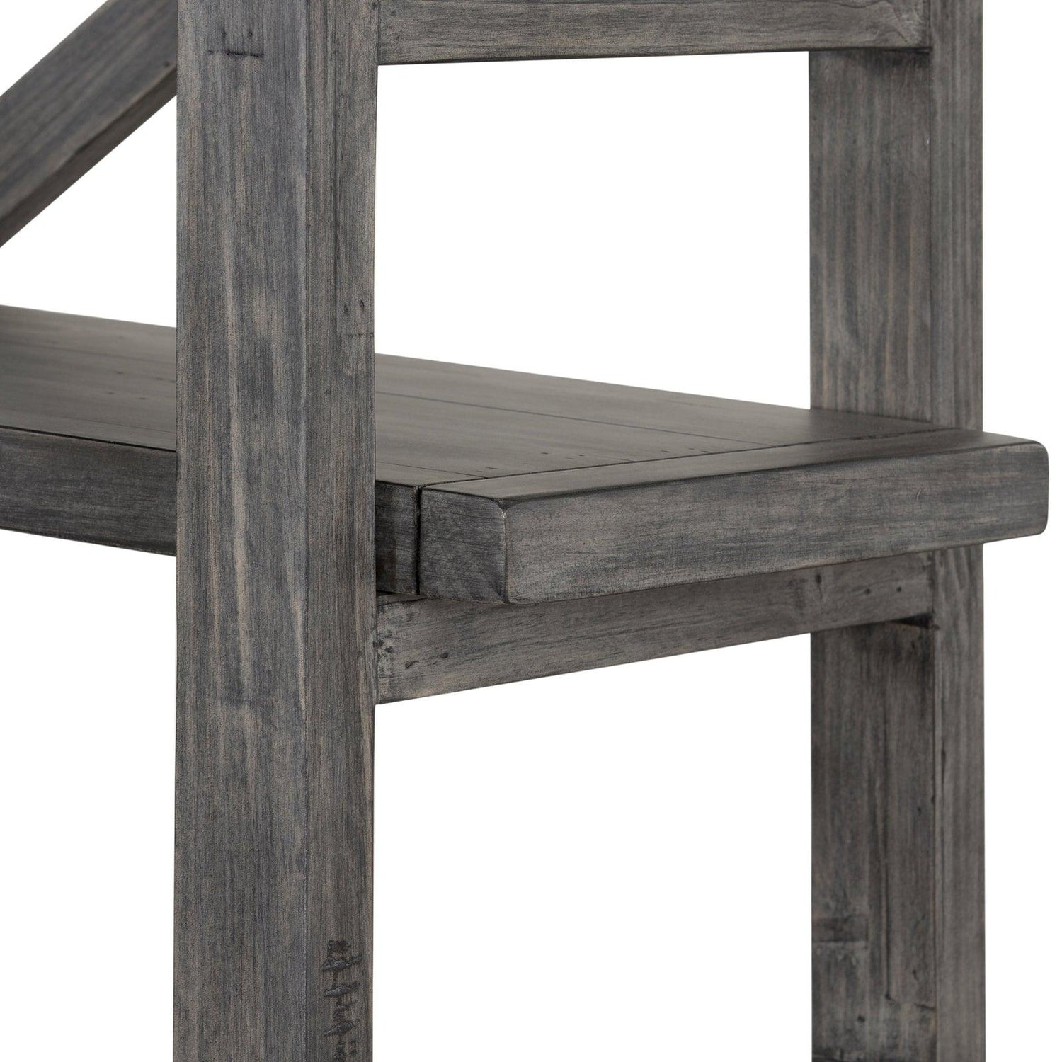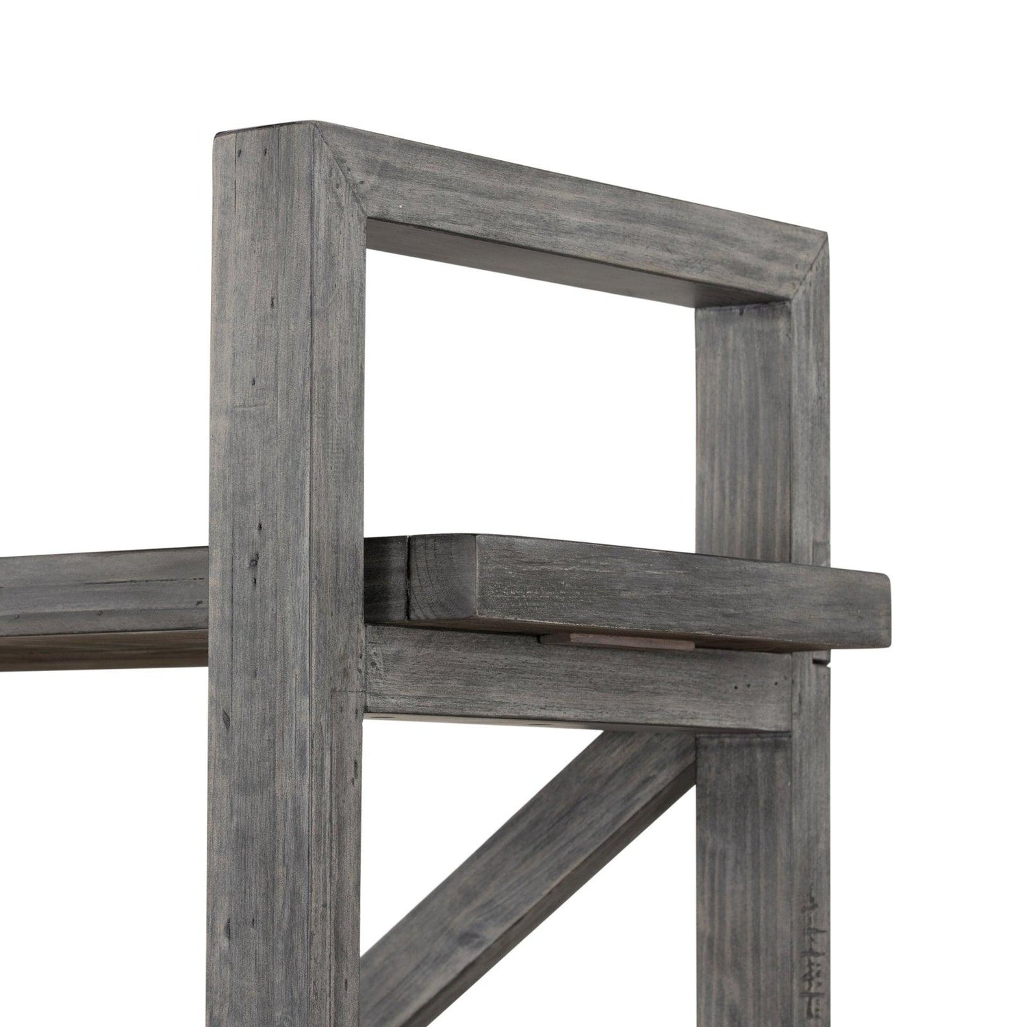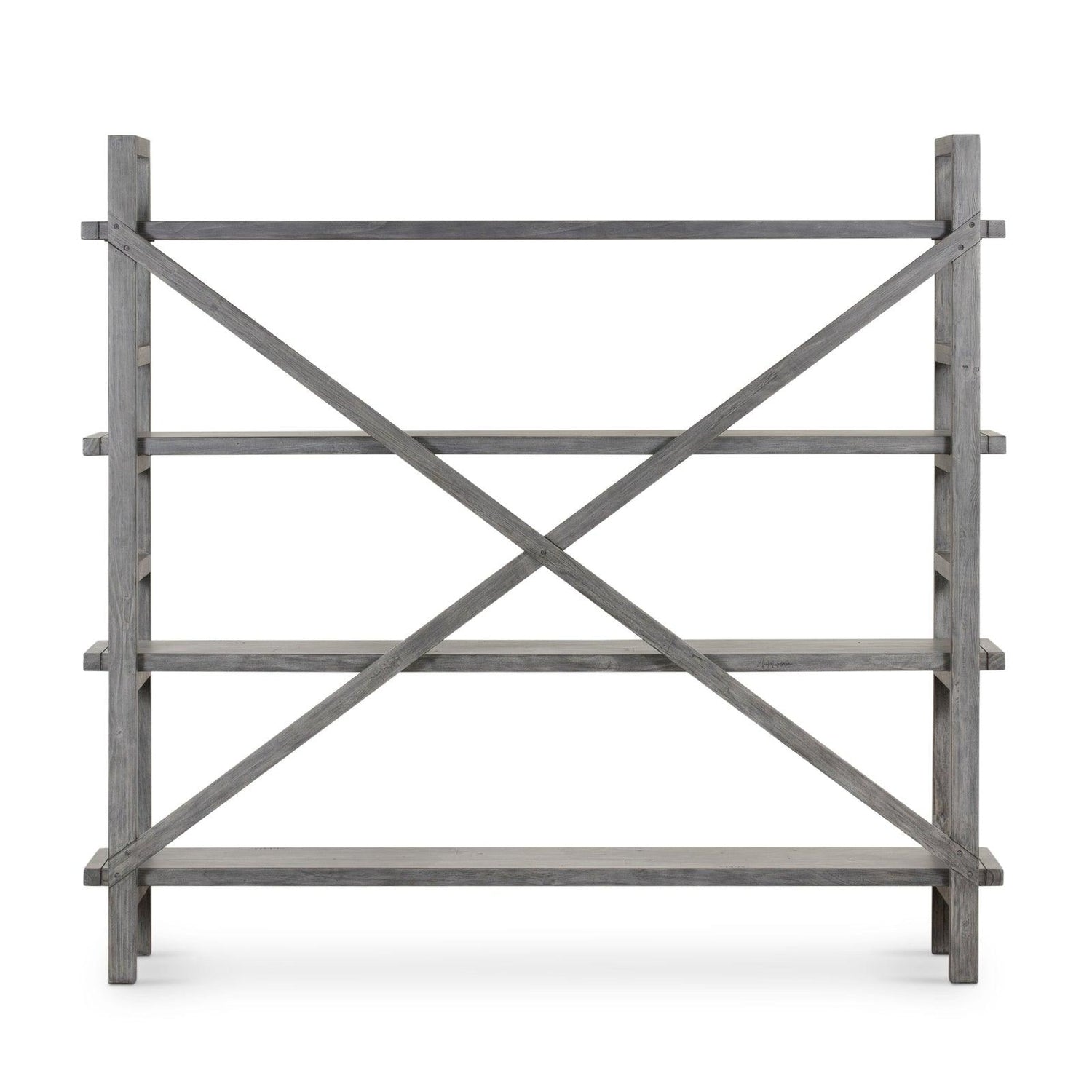 • Terminado en un gris lavado versátil, cuatro tablones móviles de maderas recuperadas mixtas se apilan para una exhibición abierta de tesoros personales.