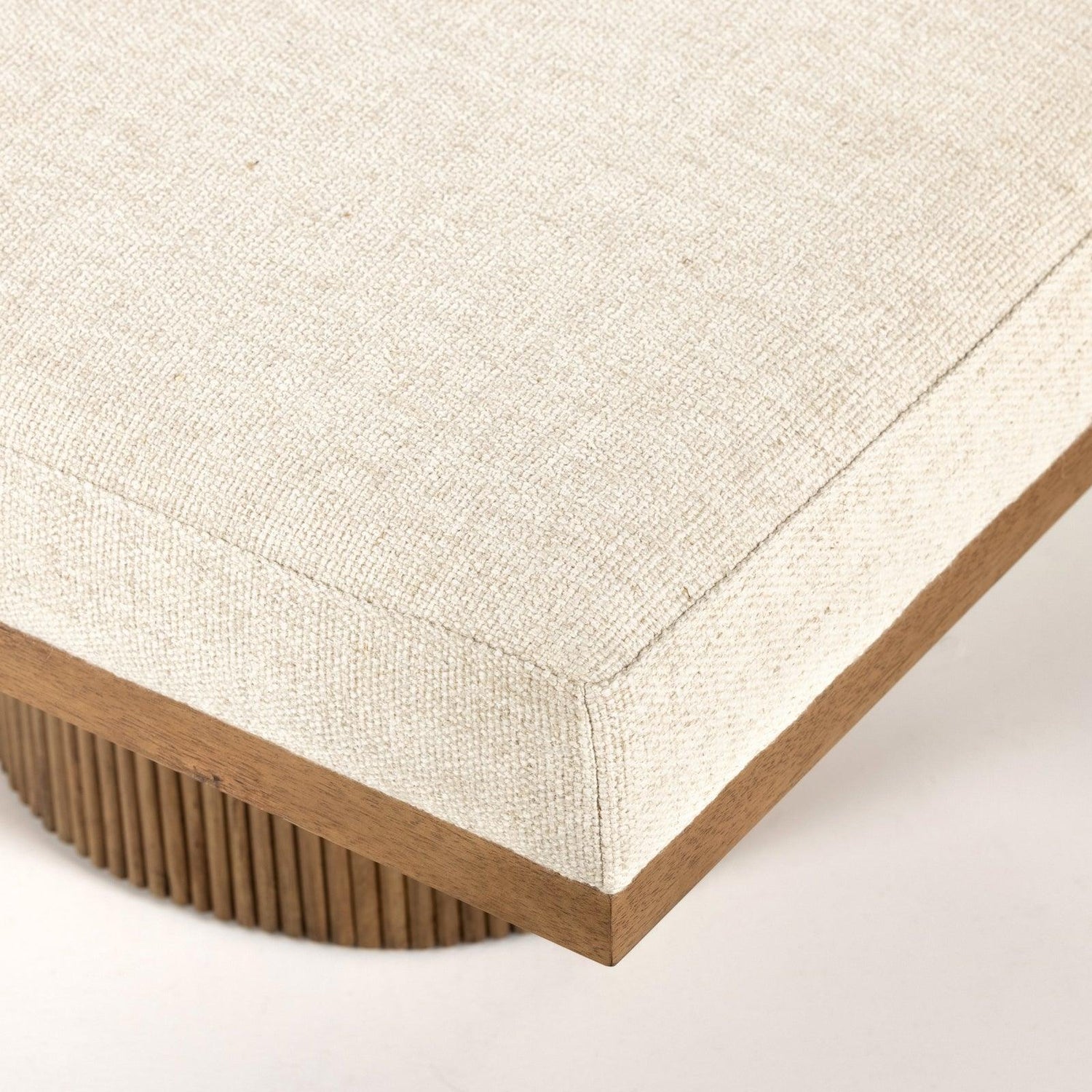 - Tapizado en tejido de alto rendimiento de color crema exclusivo de Four Hands, un acolchado fijo y un reposacabezas suelto invitan a acomodarse.