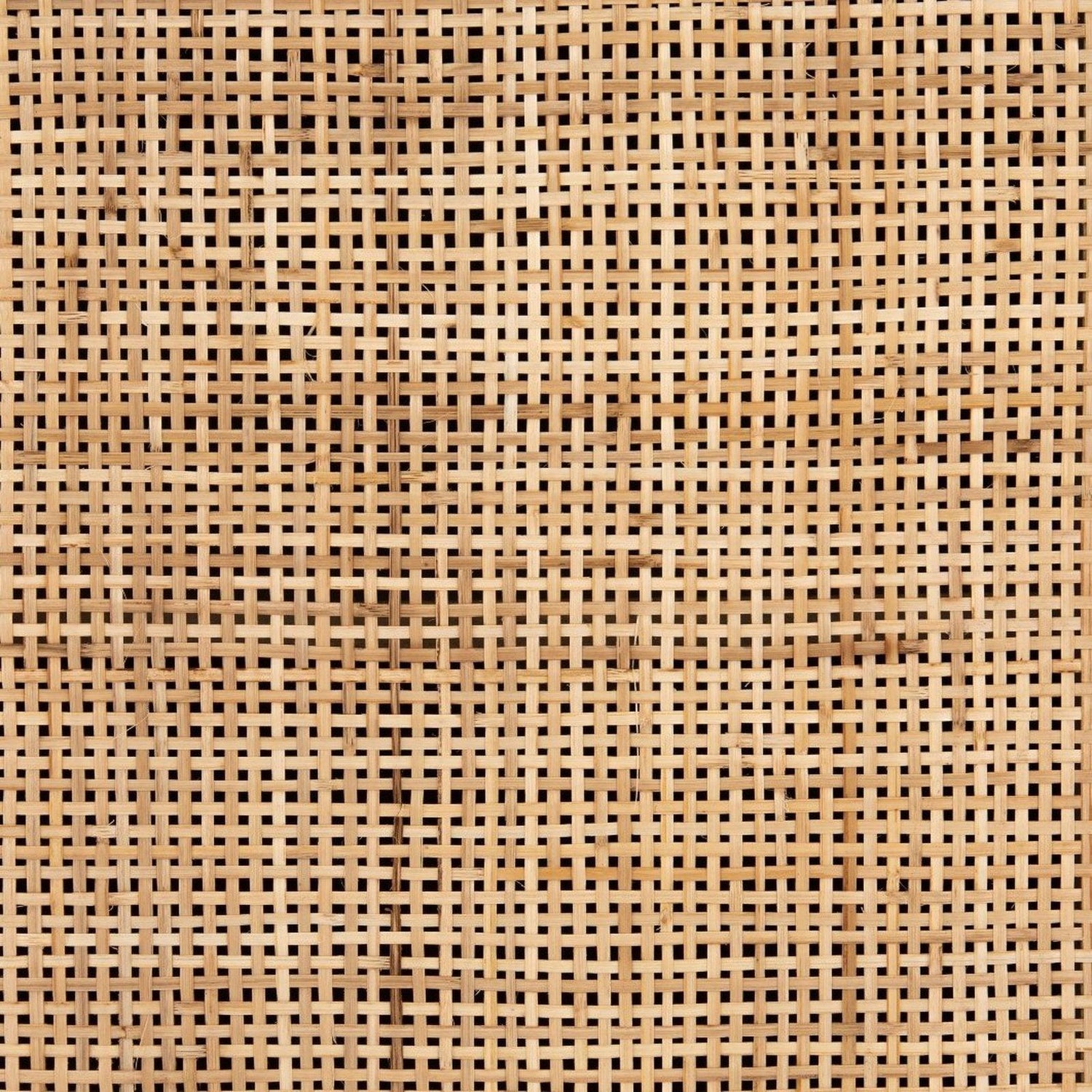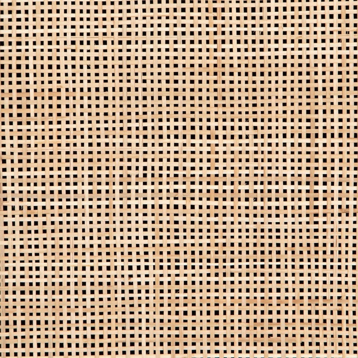 - El marco de mango natural presenta gabinetes frontales de caña tejida, para una apariencia texturizada con un contraste llamativo.