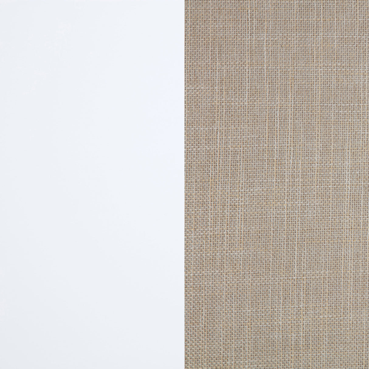 - El acabado blanco nítido complementa el álamo y la madera de ingeniería, con detalles de ratán para crear textura.