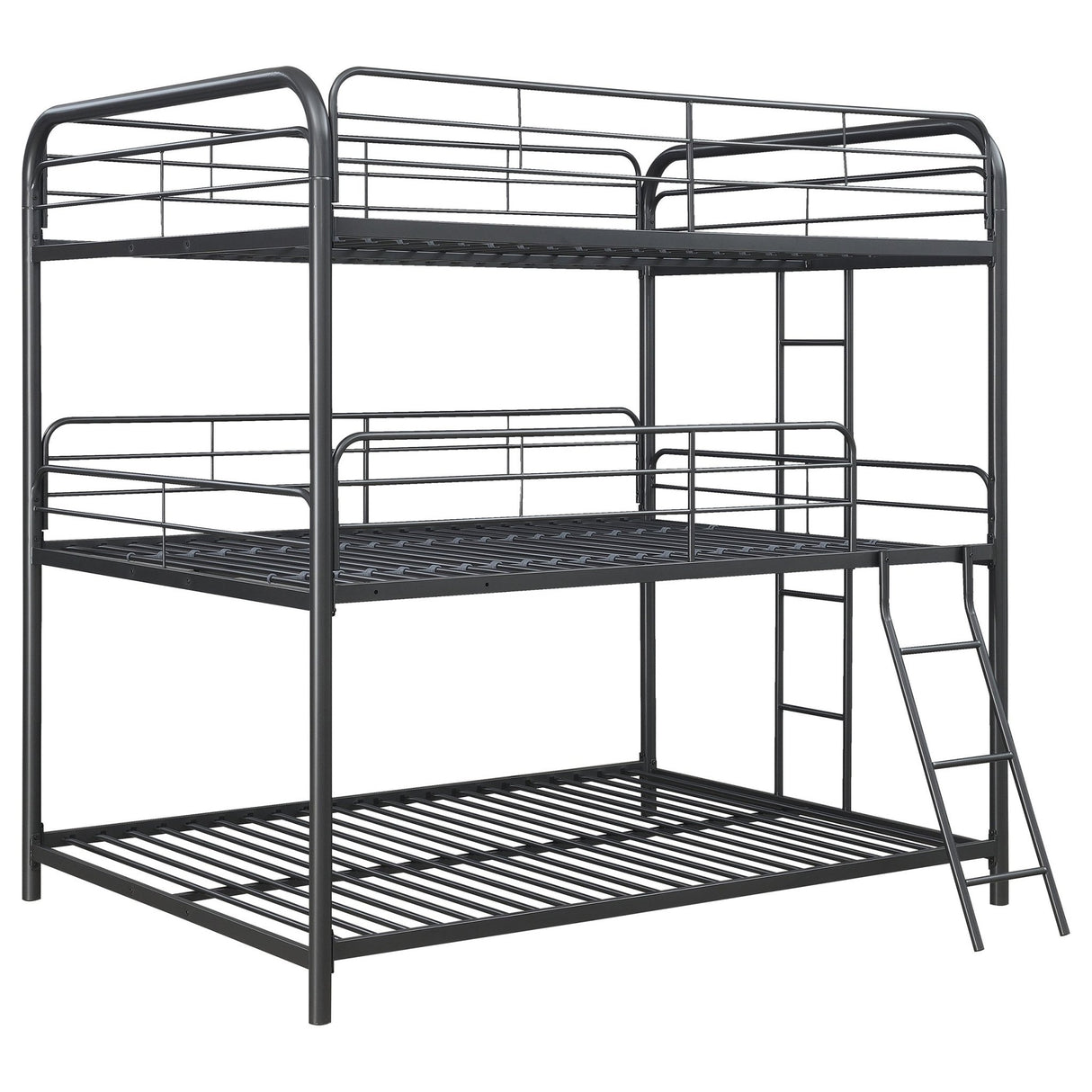 Litera triple tamaño matrimonial/matrimonial/matrimonial - Litera triple tamaño matrimonial Garner con escalera color bronce