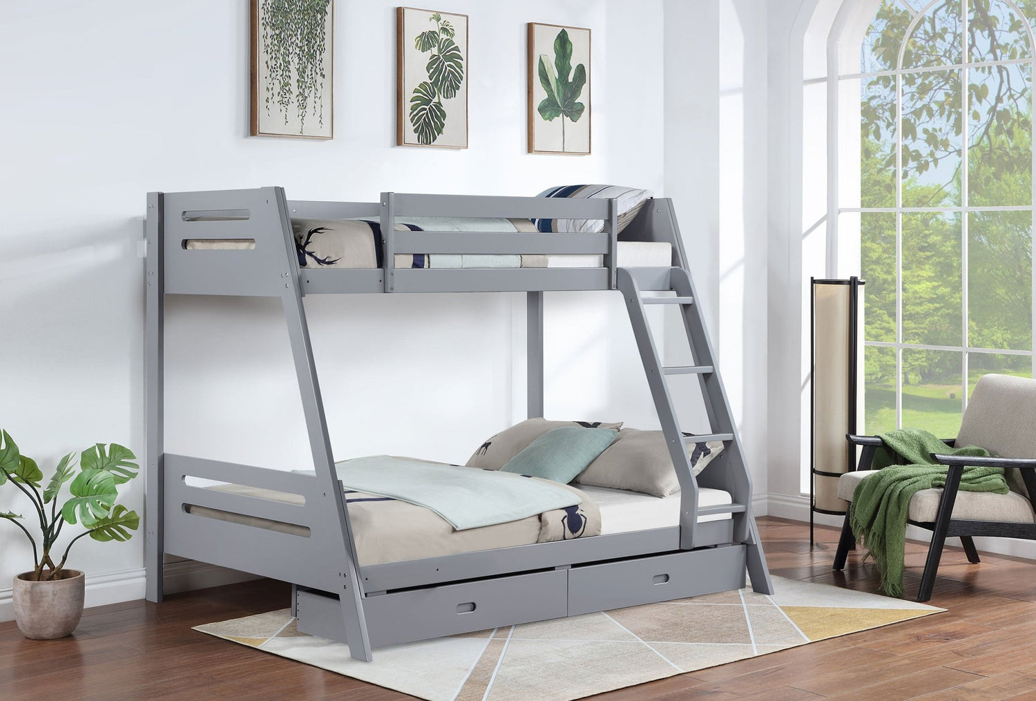 Litera individual/doble - Litera Trisha Wood con cajones de almacenamiento, color gris