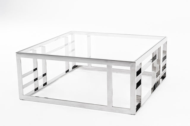 Modrest Stephen - Mesa de centro cuadrada moderna de vidrio y acero inoxidable - VGHB-341E | VIG