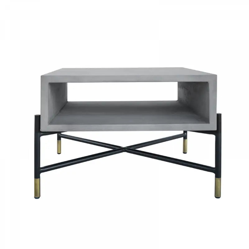 La mesa de centro moderna de hormigón y metal Modrest Walker aporta un toque moderno a tu hogar. Cuenta con una robusta base de metal negro cepillado que sostiene un tablero de hormigón gris con forma de caja. El tablero cuenta con un estante abierto donde puedes guardar objetos y adornos para su exhibición. Las puntas de latón de las patas realzan la base negra, realzando el aspecto general de la mesa. Esta moderna mesa de centro de hormigón y metal llenará tu hogar de un atractivo funcional y resistente.
