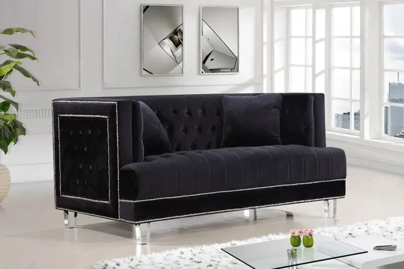 Meridian Furniture - Sofá de dos plazas Lucas de terciopelo negro - 609BL-L