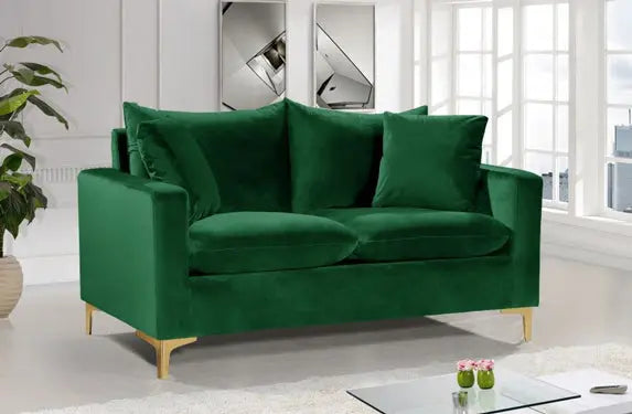 Sofá de dos plazas Naomi de terciopelo verde - 633Green-L | Meridian está agotado y se enviará tan pronto como vuelva a estar disponible.