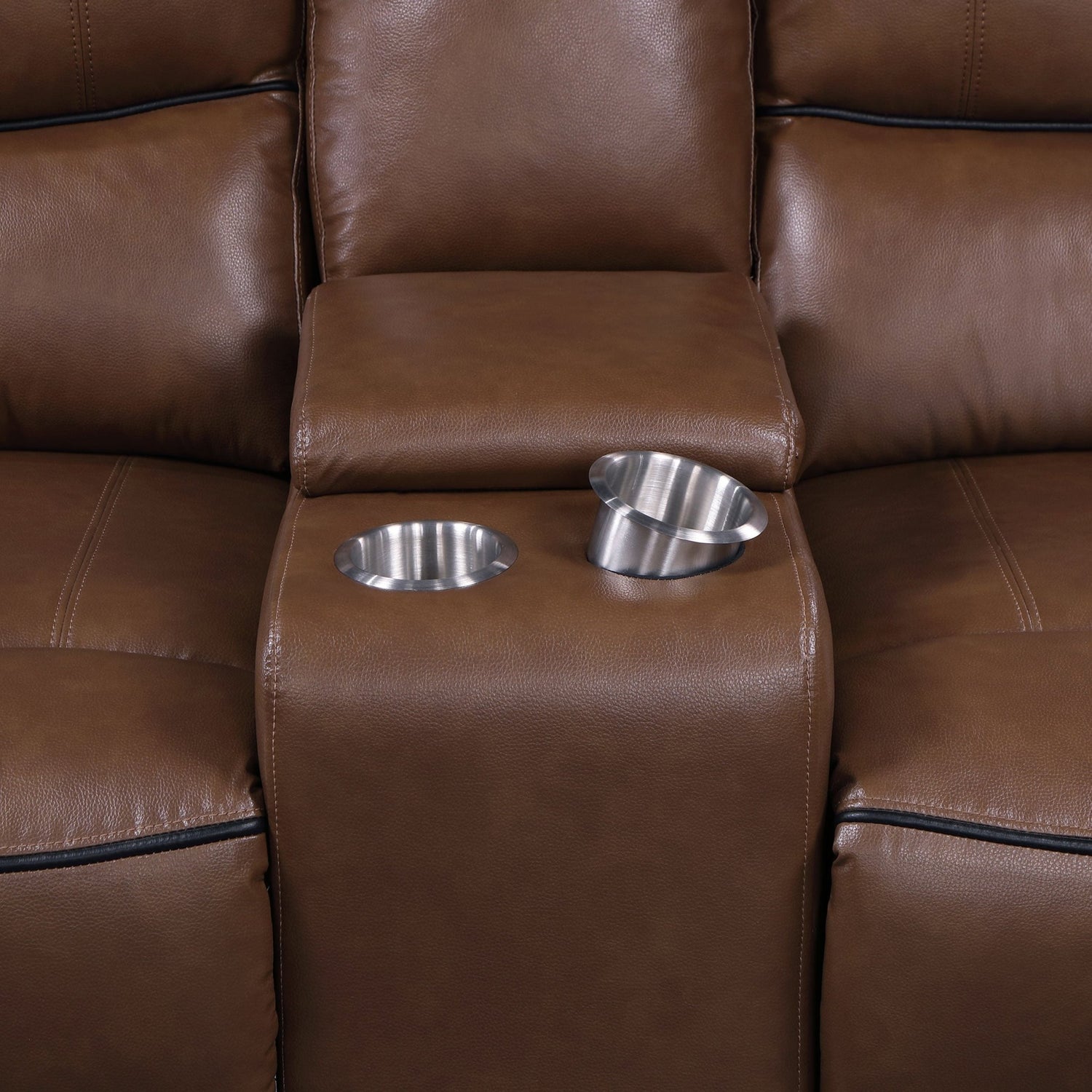 Conjunto de sofá reclinable eléctrico tapizado de 3 piezas Greenfield en marrón silla de montar