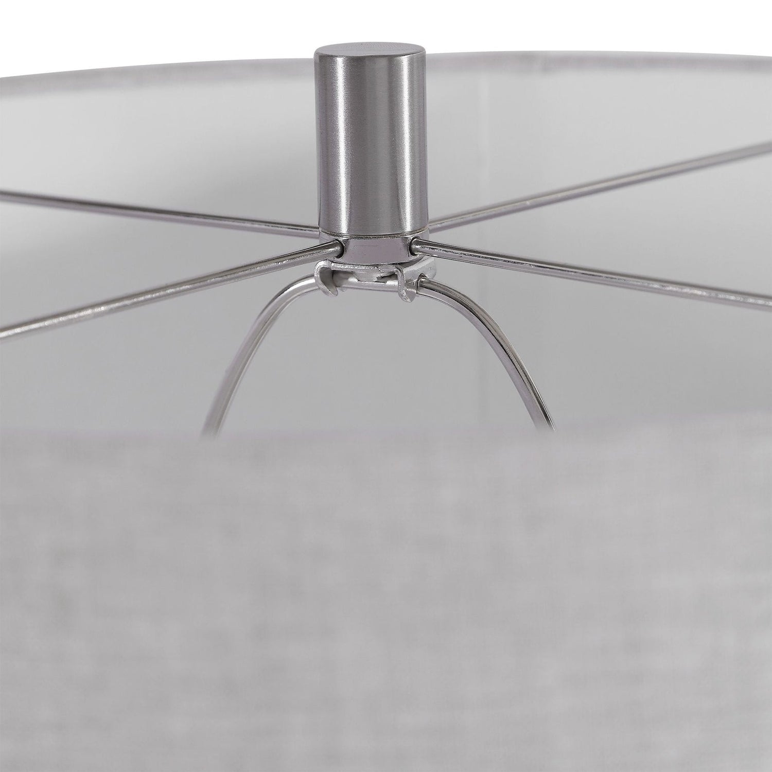 - La pantalla del tambor de tapa dura es de lino gris claro con vetas naturales.