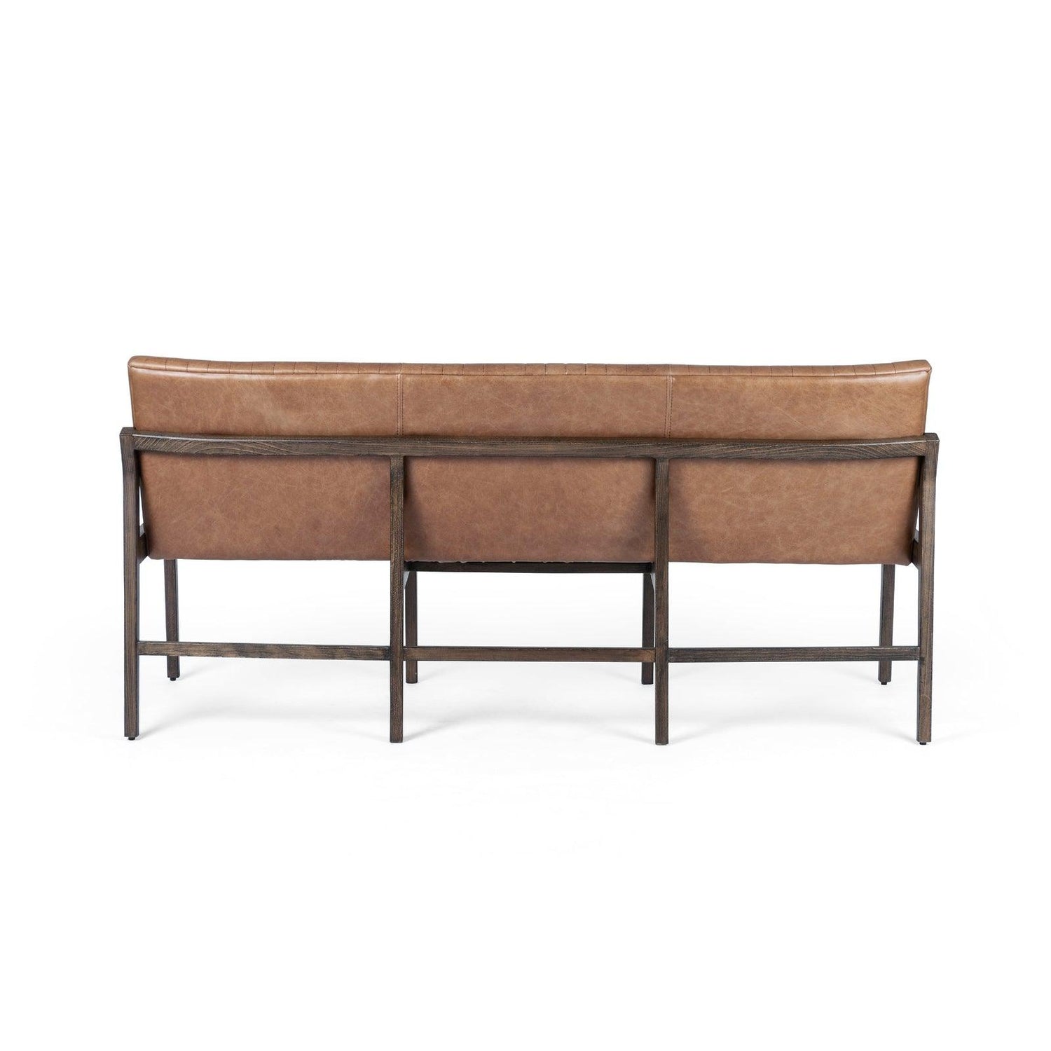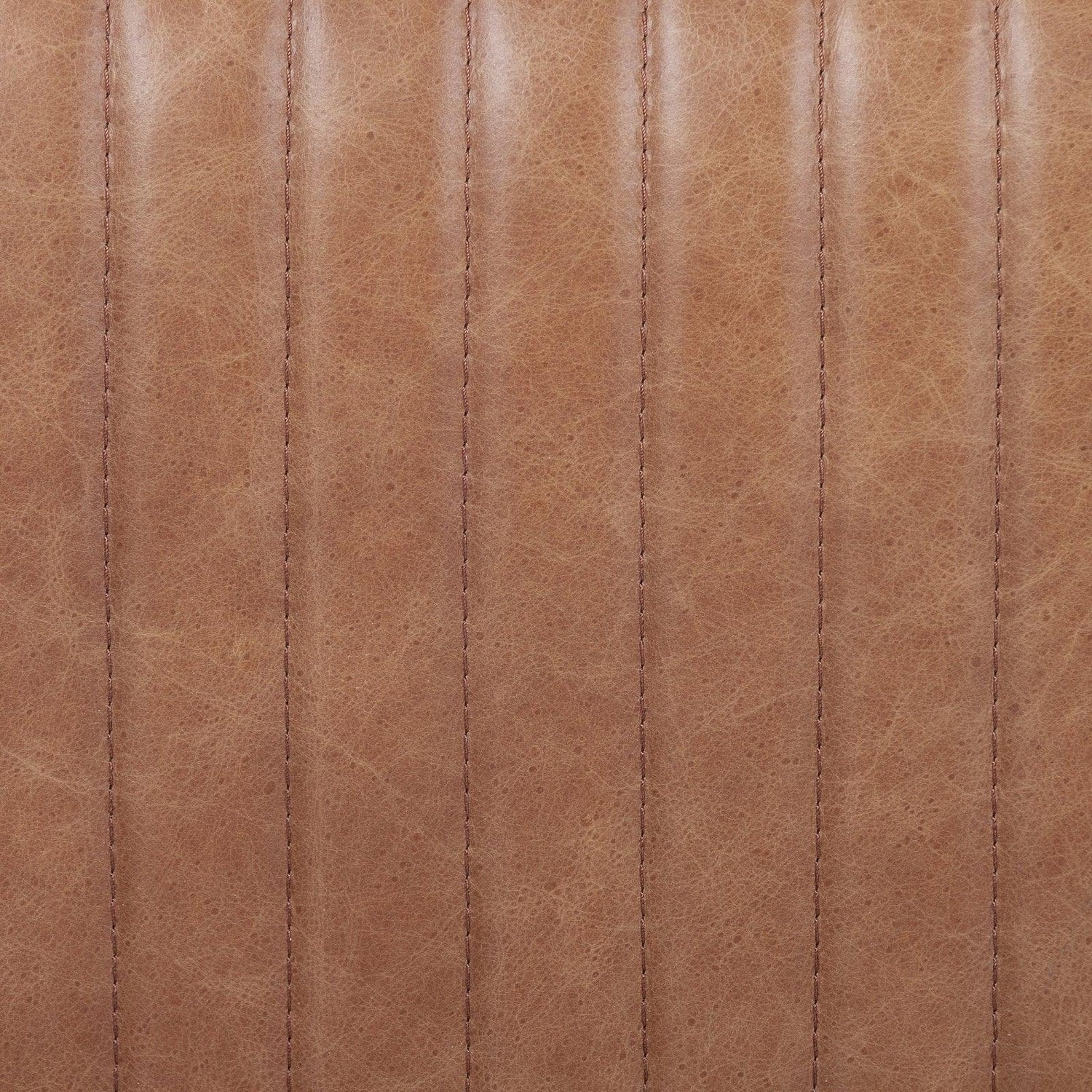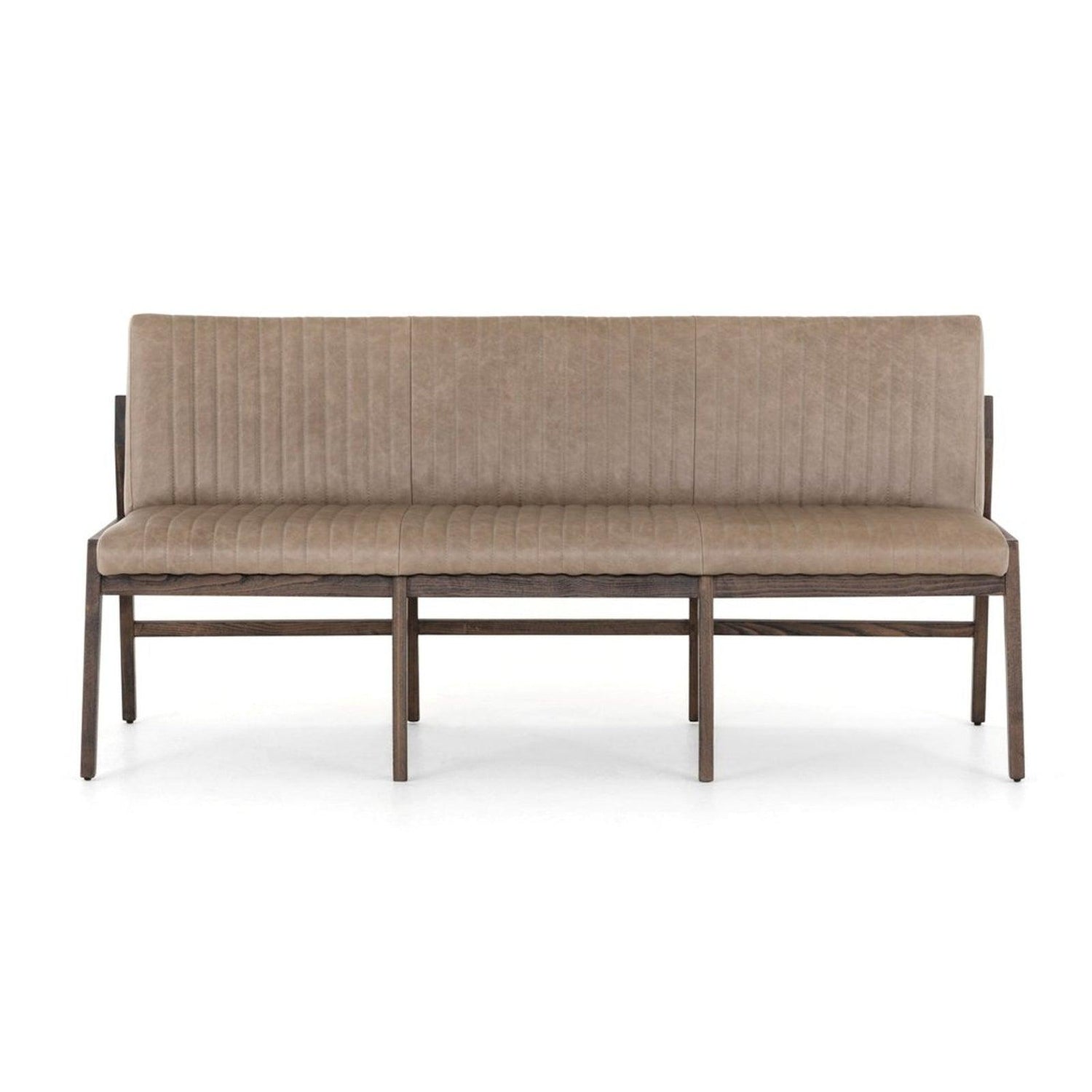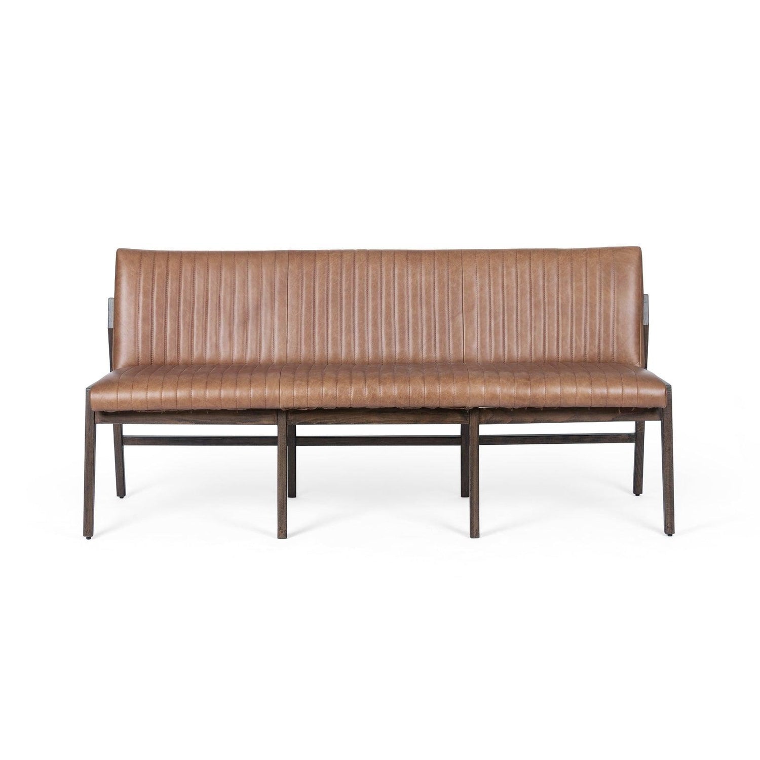 - Los canales verticales y el rico cuero de grano superior de color castaño le otorgan a este banco de comedor inspirado en los años cincuenta una nueva energía.