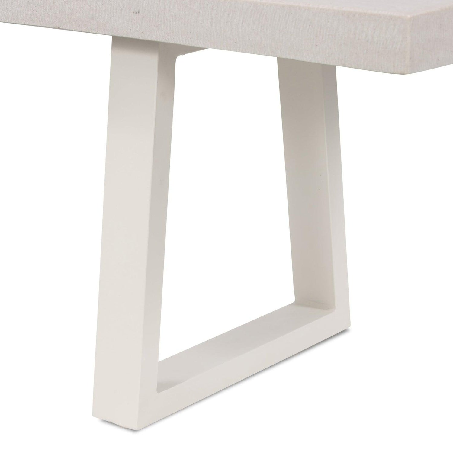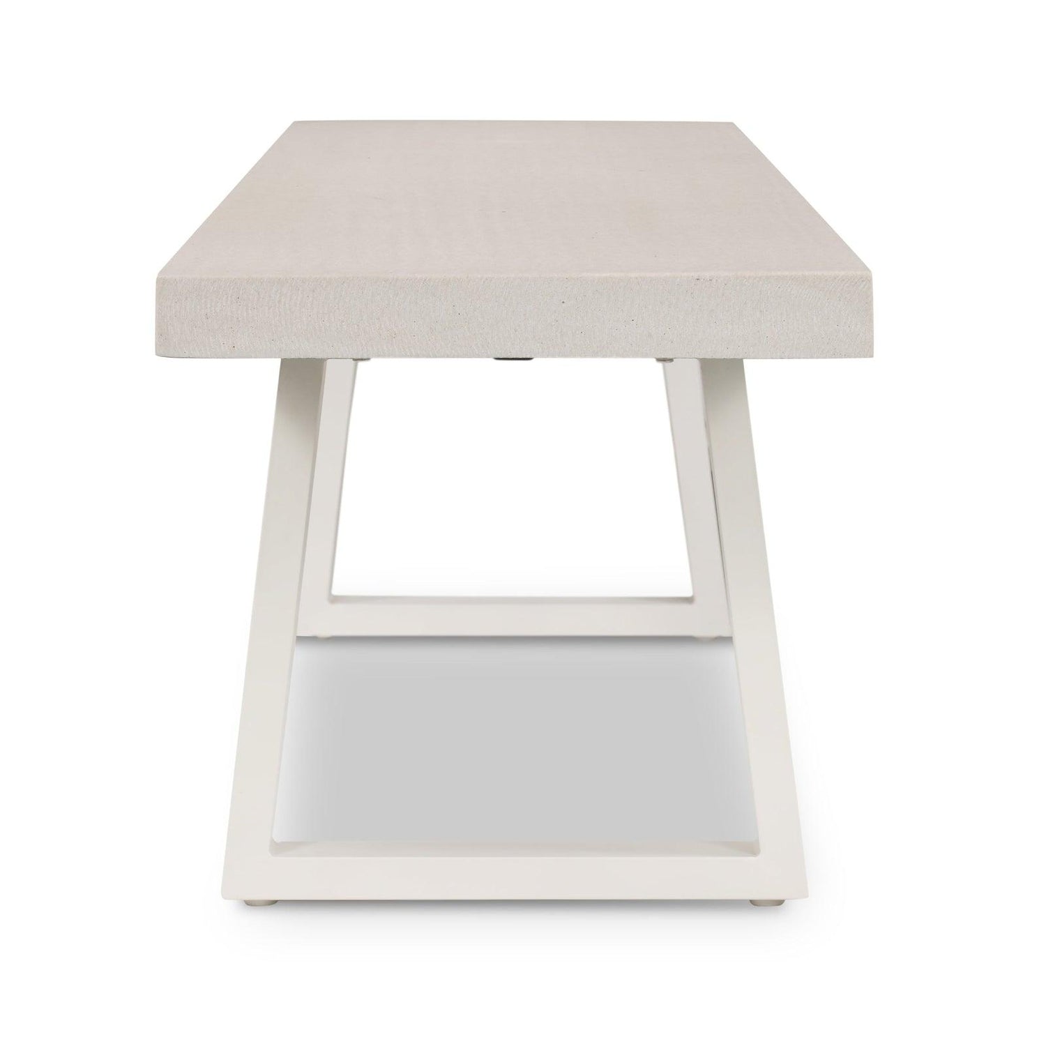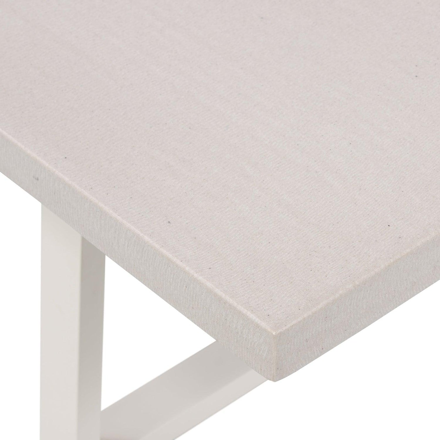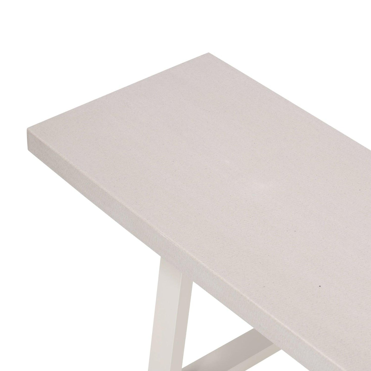 - Un banco de poliresina sorprendentemente simple, derivado de arena de río, pulido hasta lograr un brillo suave.