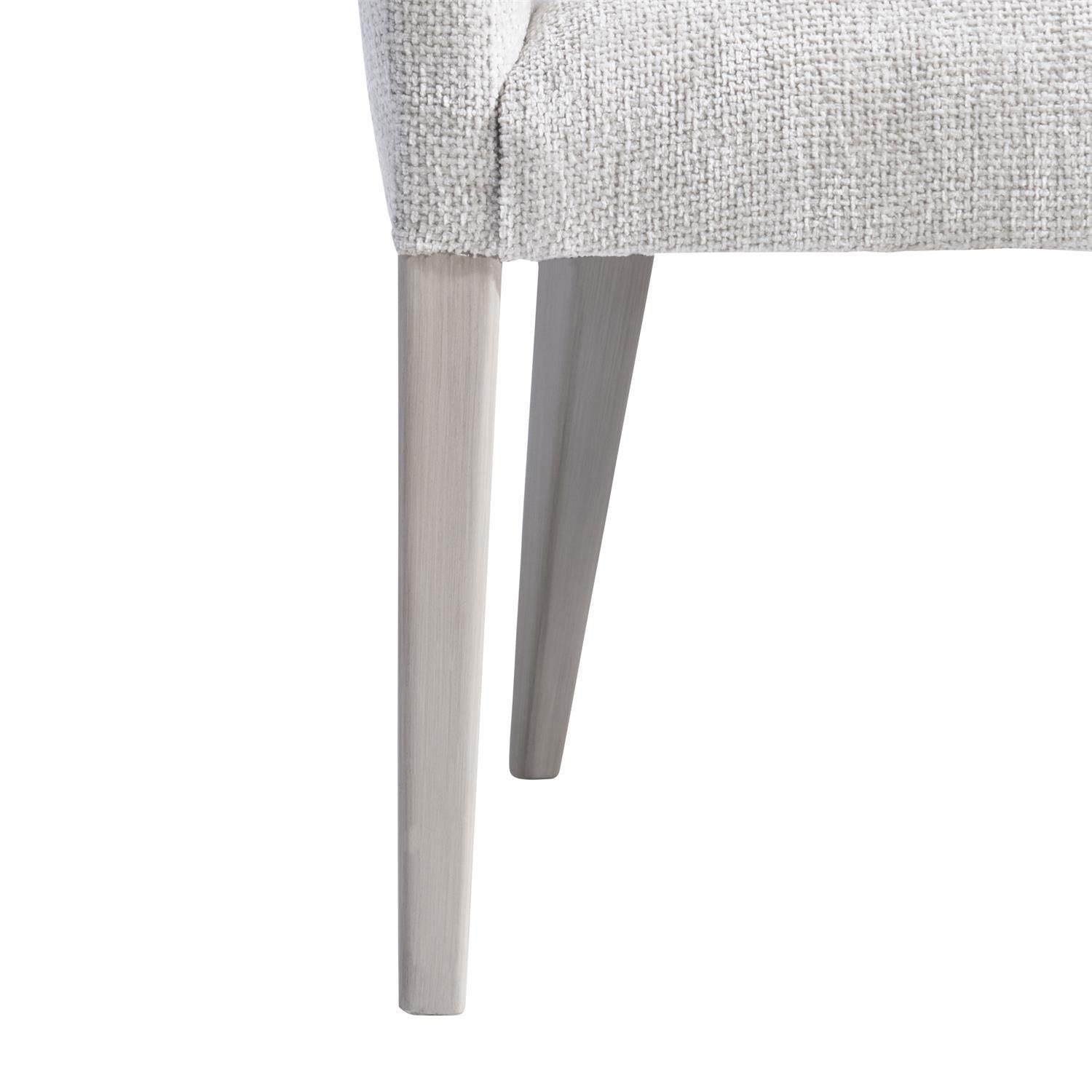 - Las patas de madera expuestas, acabadas en Mist, sostienen el asiento completamente tapizado.