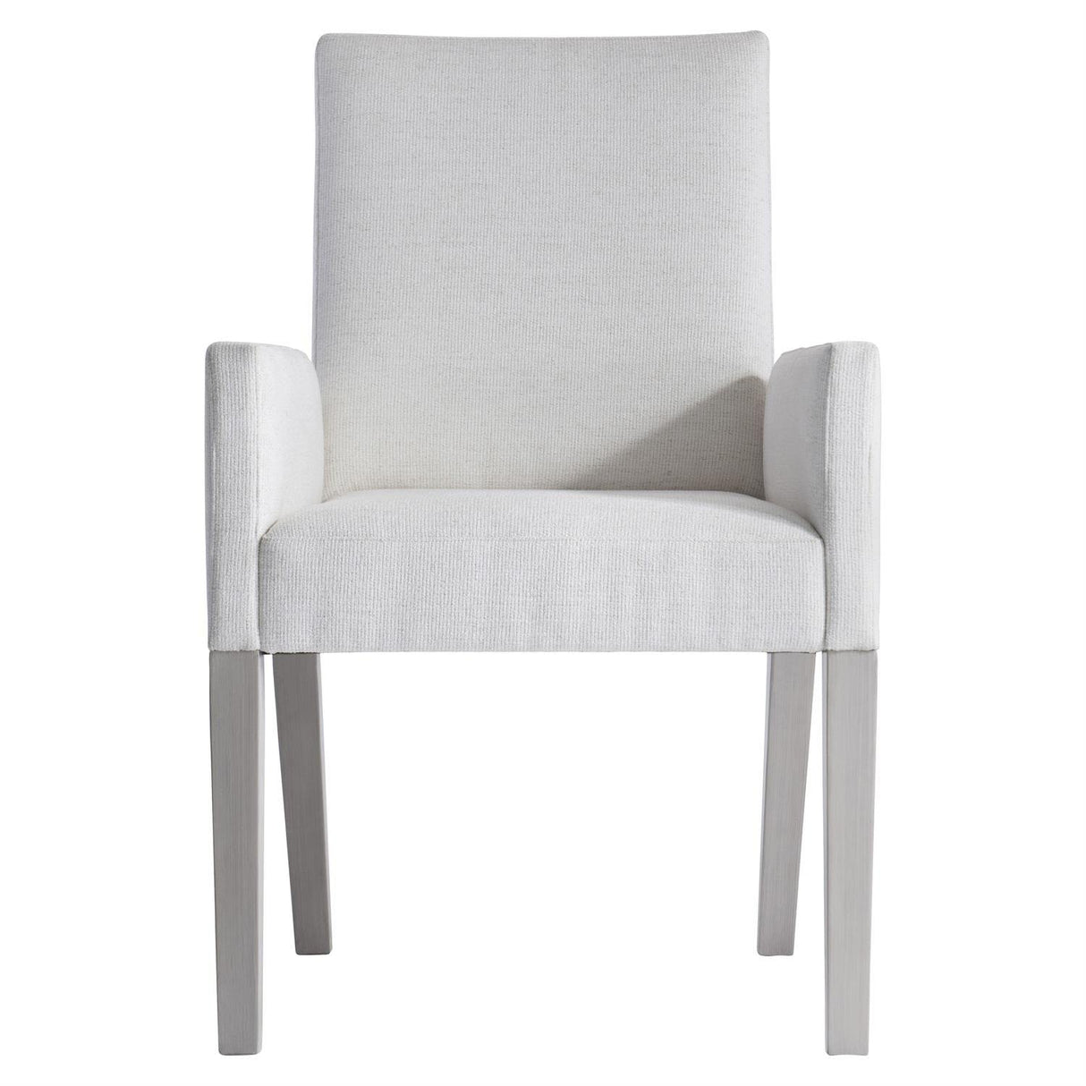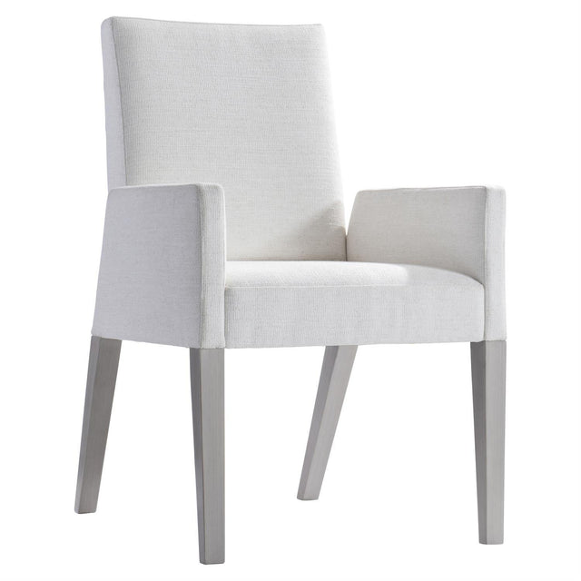 - Respaldo, brazos y asiento tapizados en tela B100 y patas vistas de madera de fresno cuarteada en acabado Mist.