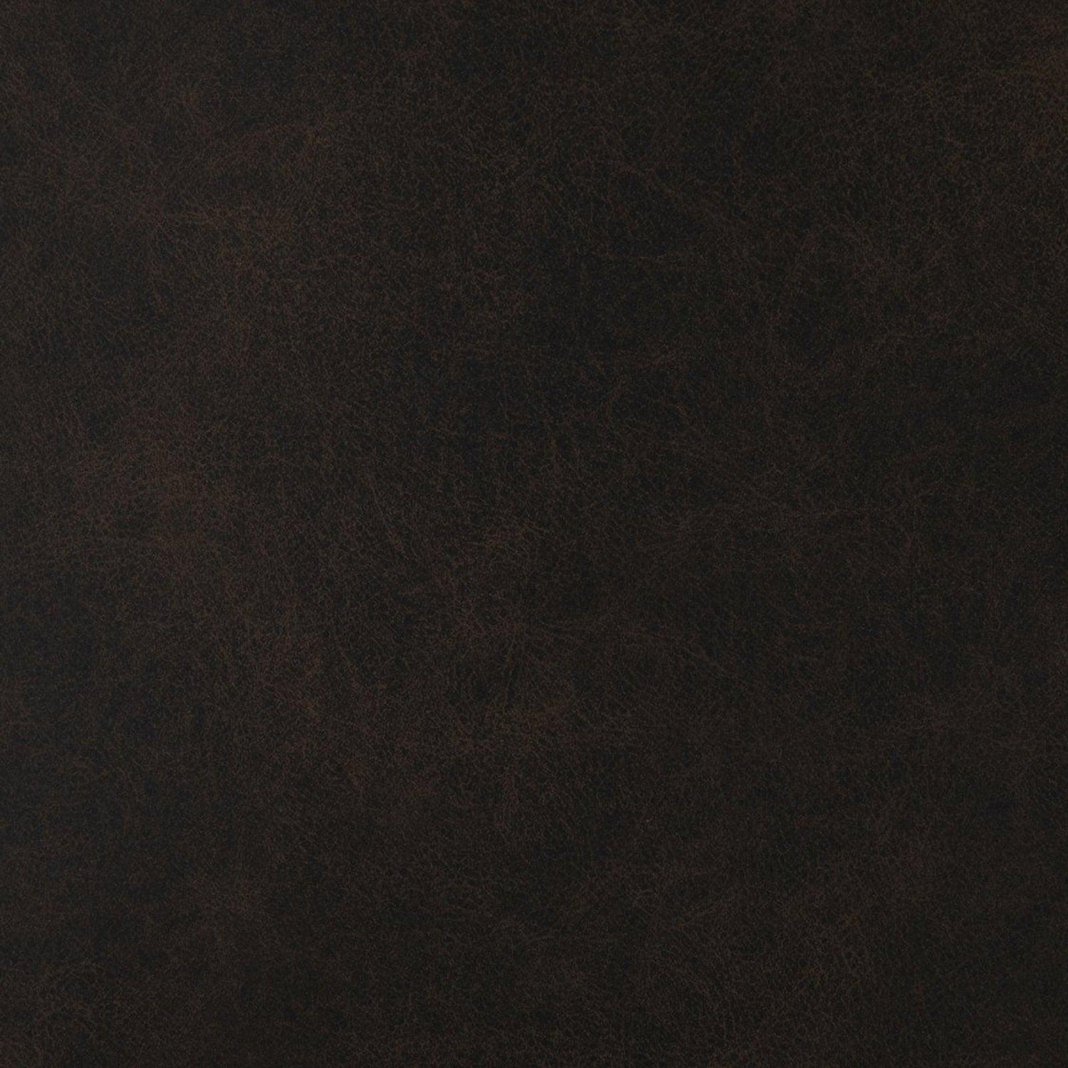 - Las modernas curvas en forma de S en cuero sintético marrón desgastado se ubican sobre una base arquitectónica de hierro encerado negro.