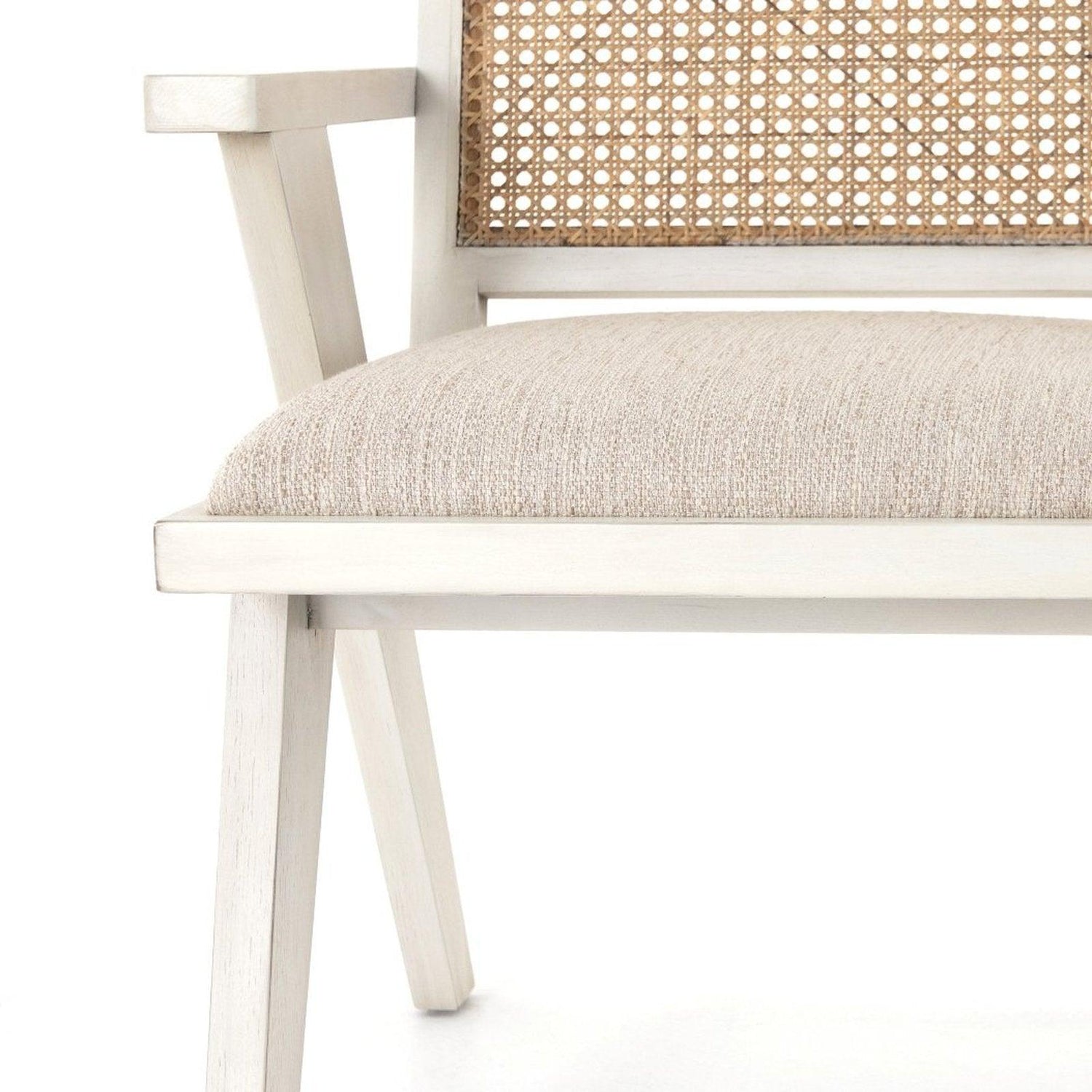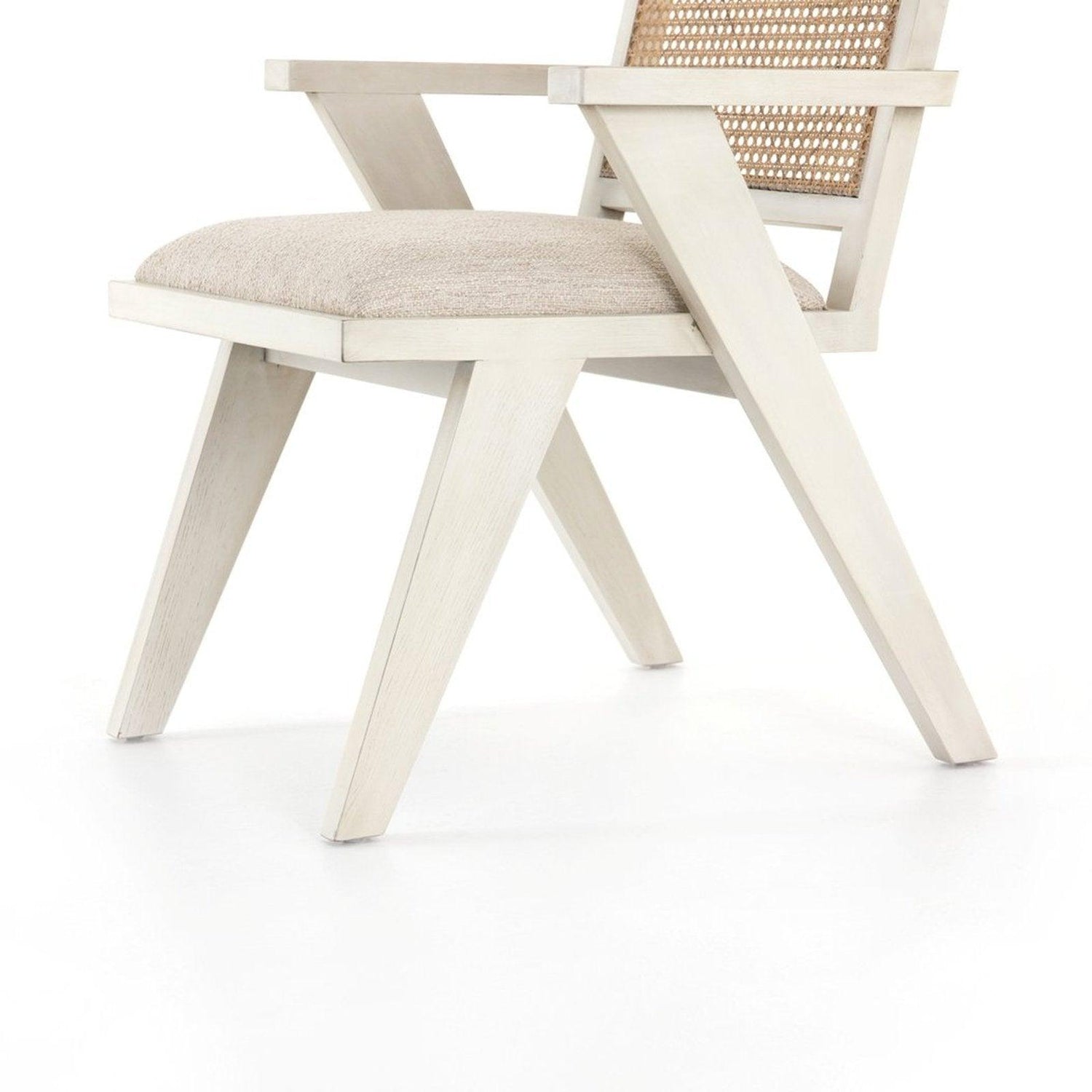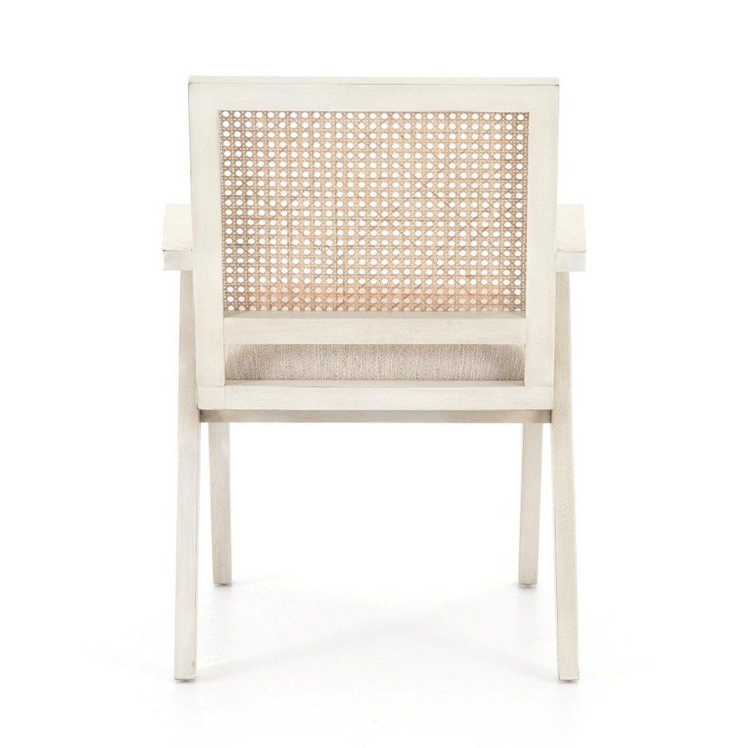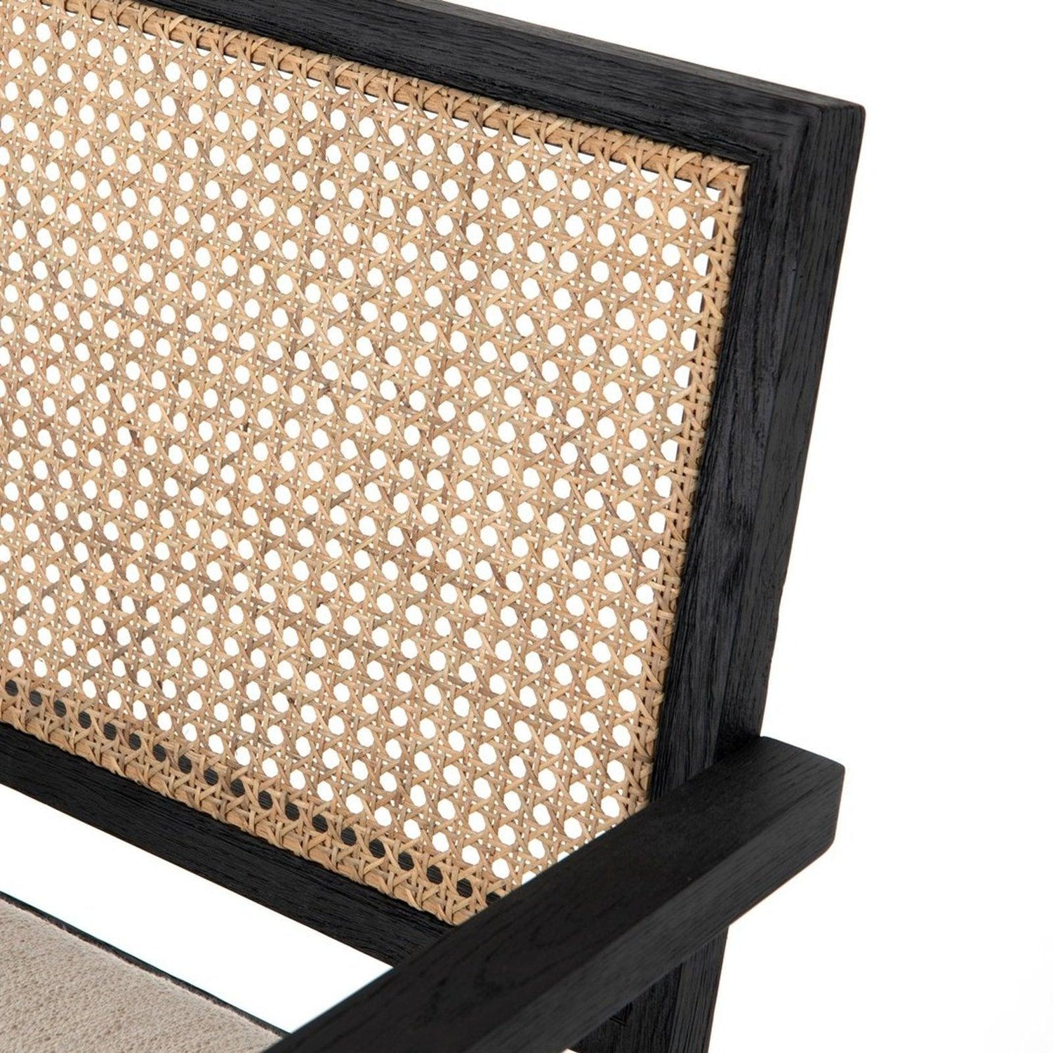 • Inspirada en los arquitectos suizo-francés Le Corbusier y Pierre Jeanneret, una silla de comedor monocromática y de alto contraste presenta una estructura de roble macizo y asientos de caña tejida para lograr una apariencia texturizada con vibraciones de mediados de siglo.