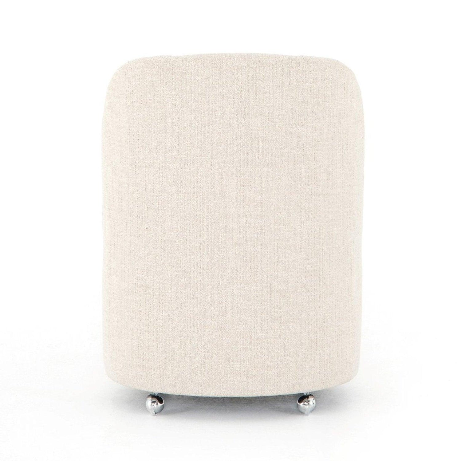 - Asientos elegantes de estilo tambor, con tapizado de color crema confeccionado en forma de T, además de ruedas cromadas para facilitar el movimiento.