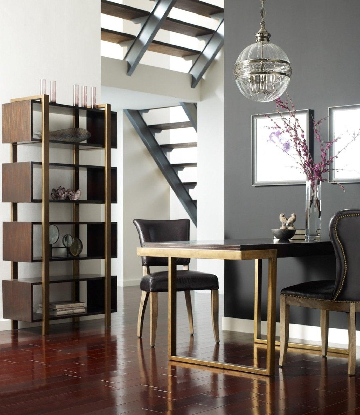 - Enmarcado por roble desgastado, el cuero de grano superior en tonos chocolate presenta el brillo de las cabezas de clavos dorados que cuadran su parte posterior.