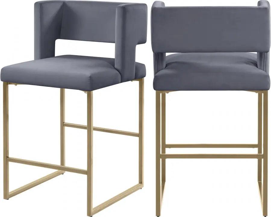 Meridian Furniture - Juego de 2 taburetes de bar Caleb de terciopelo gris - 969Grey-C